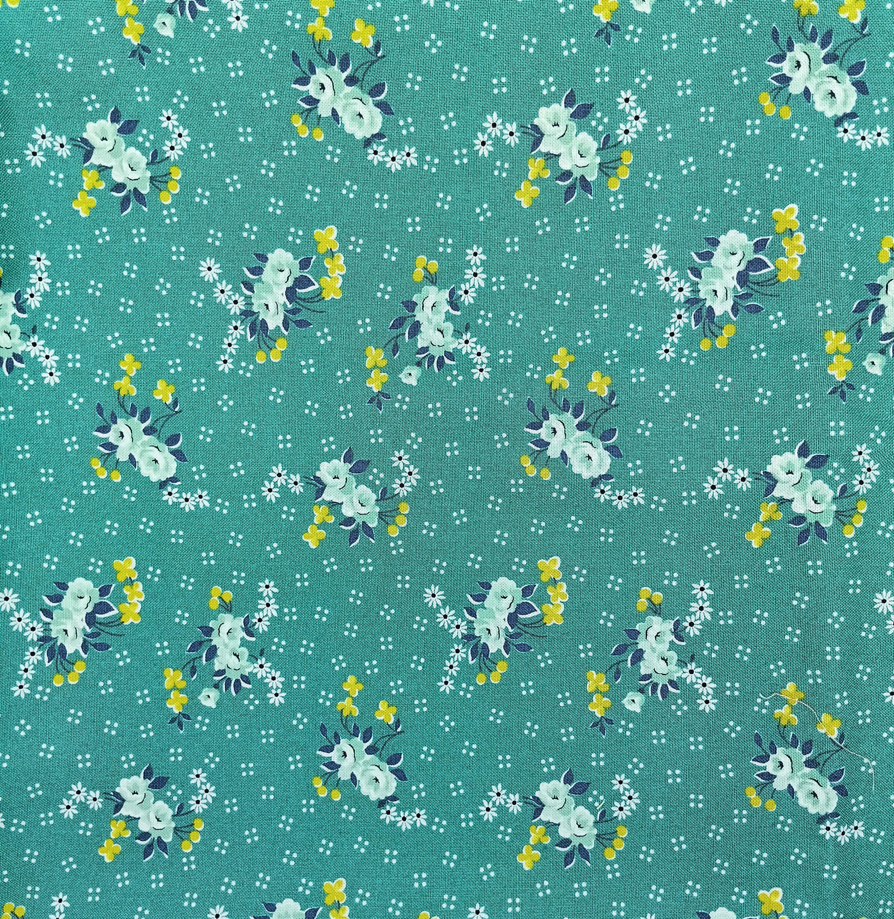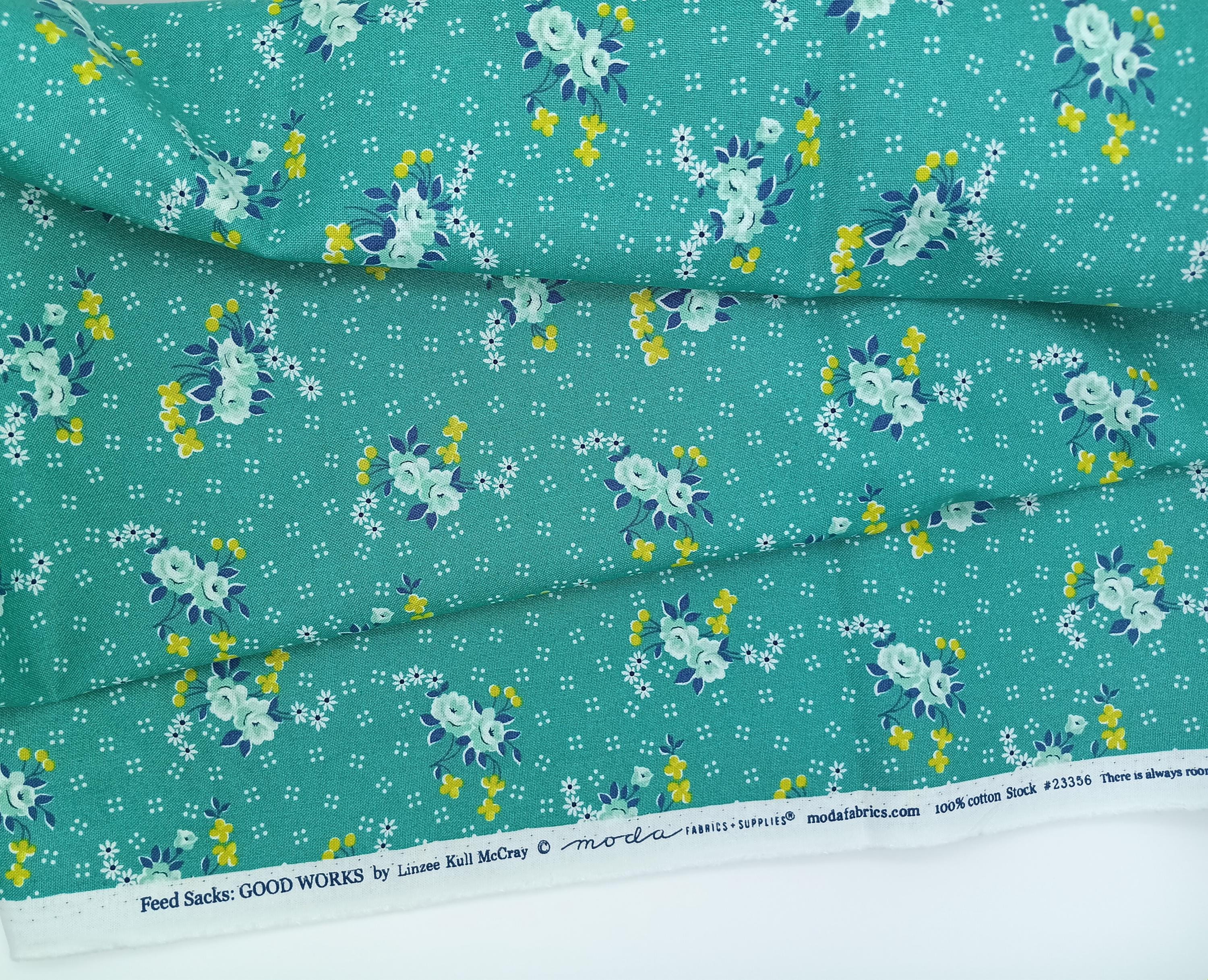 One yard Feedsack depression 20s/30s print 100% cottonSold by the yardModa fabrics & suppliesLinzee Kull McCray “Good Works” green floral fabric Wash warmTumble dryNo bleachNo dry clean