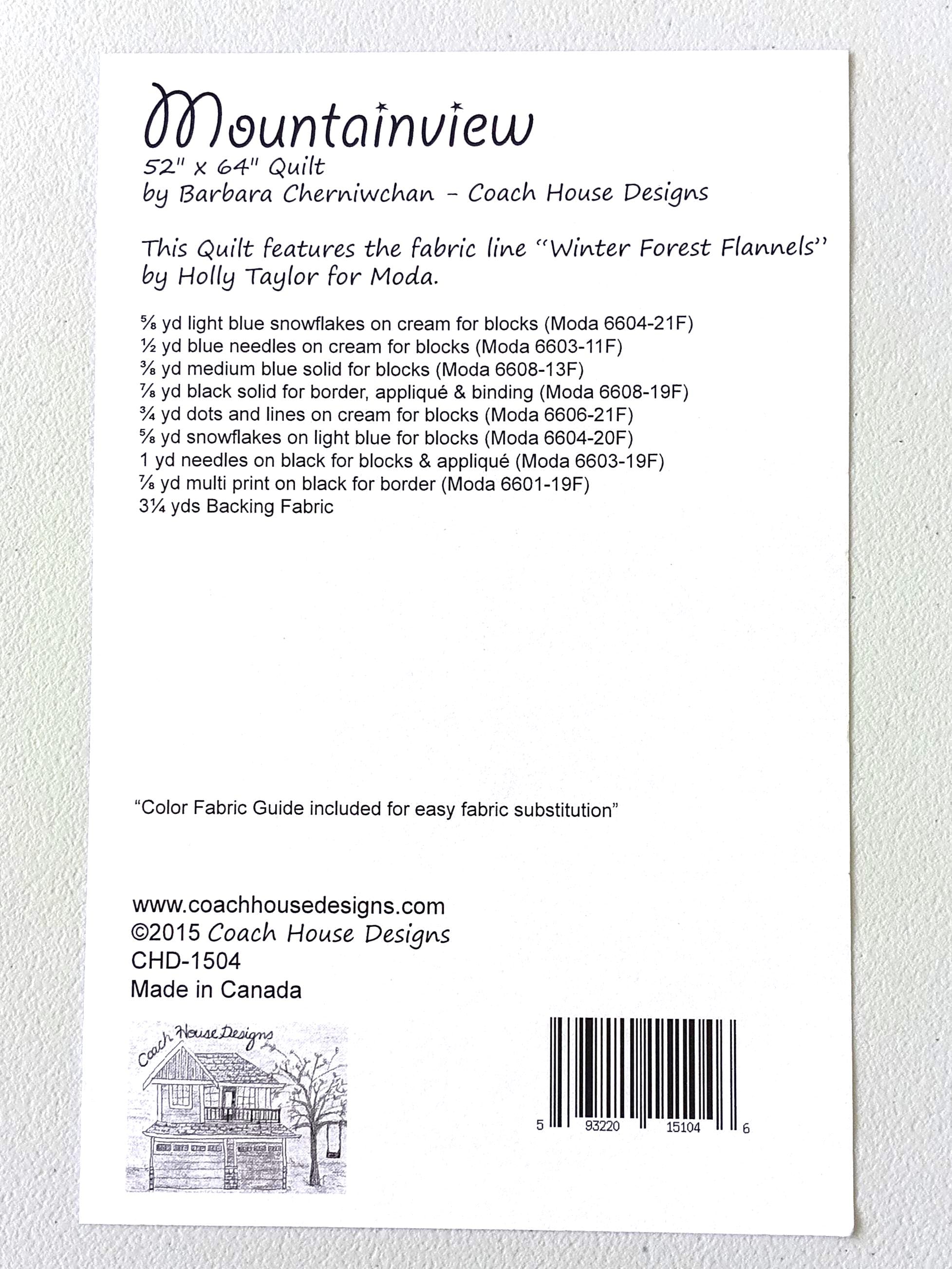 Mountainview Patternby Coach House DesignsInstructions to make a 52 x 64 throw size quiltDesigned by Barbara Cherniwchan