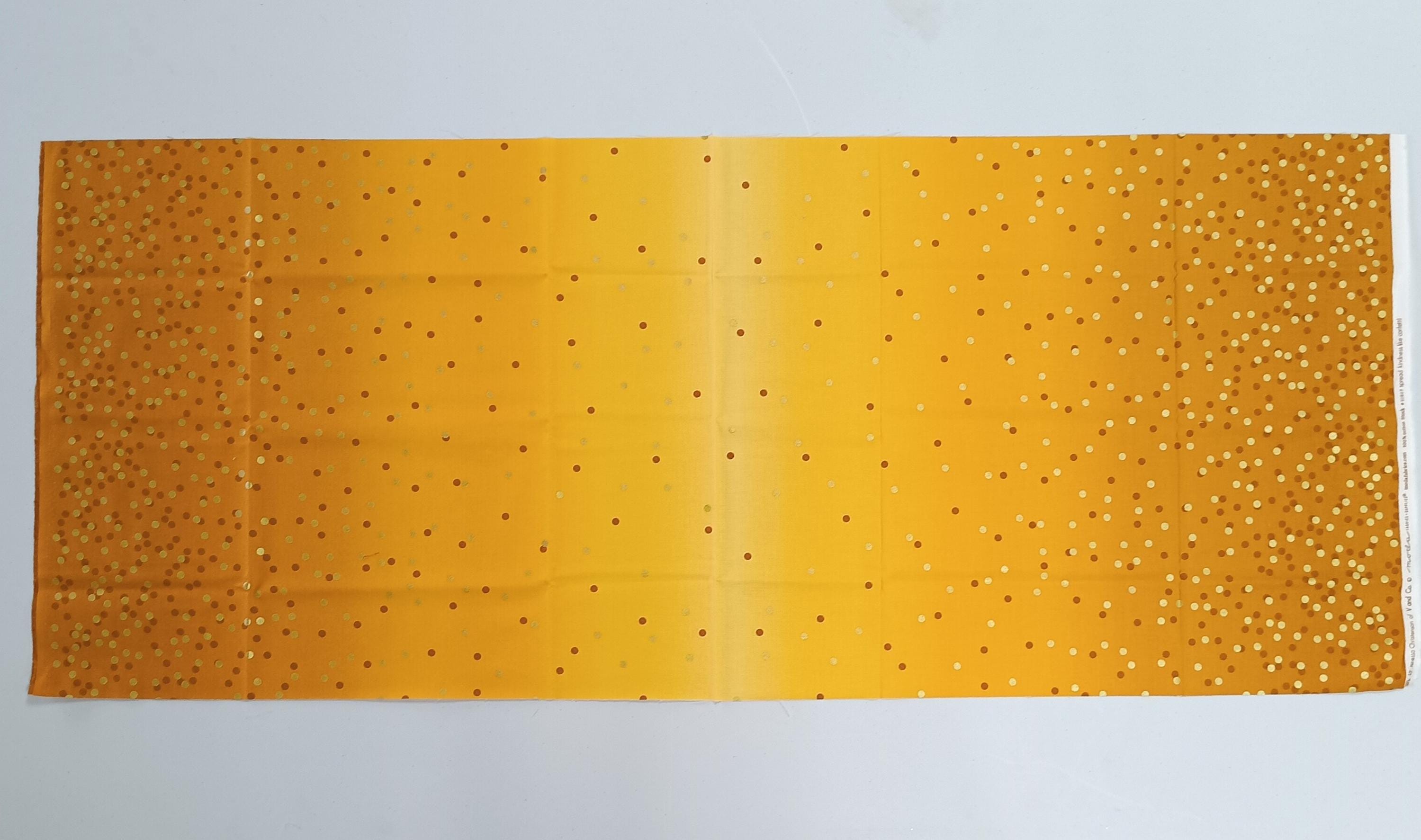 Ombre Confetti Metallic fabric Mustard by Vanessa Christenson for ModaOut of print 100% cotton Sold by the yardMachine wash cold Tumble dry low