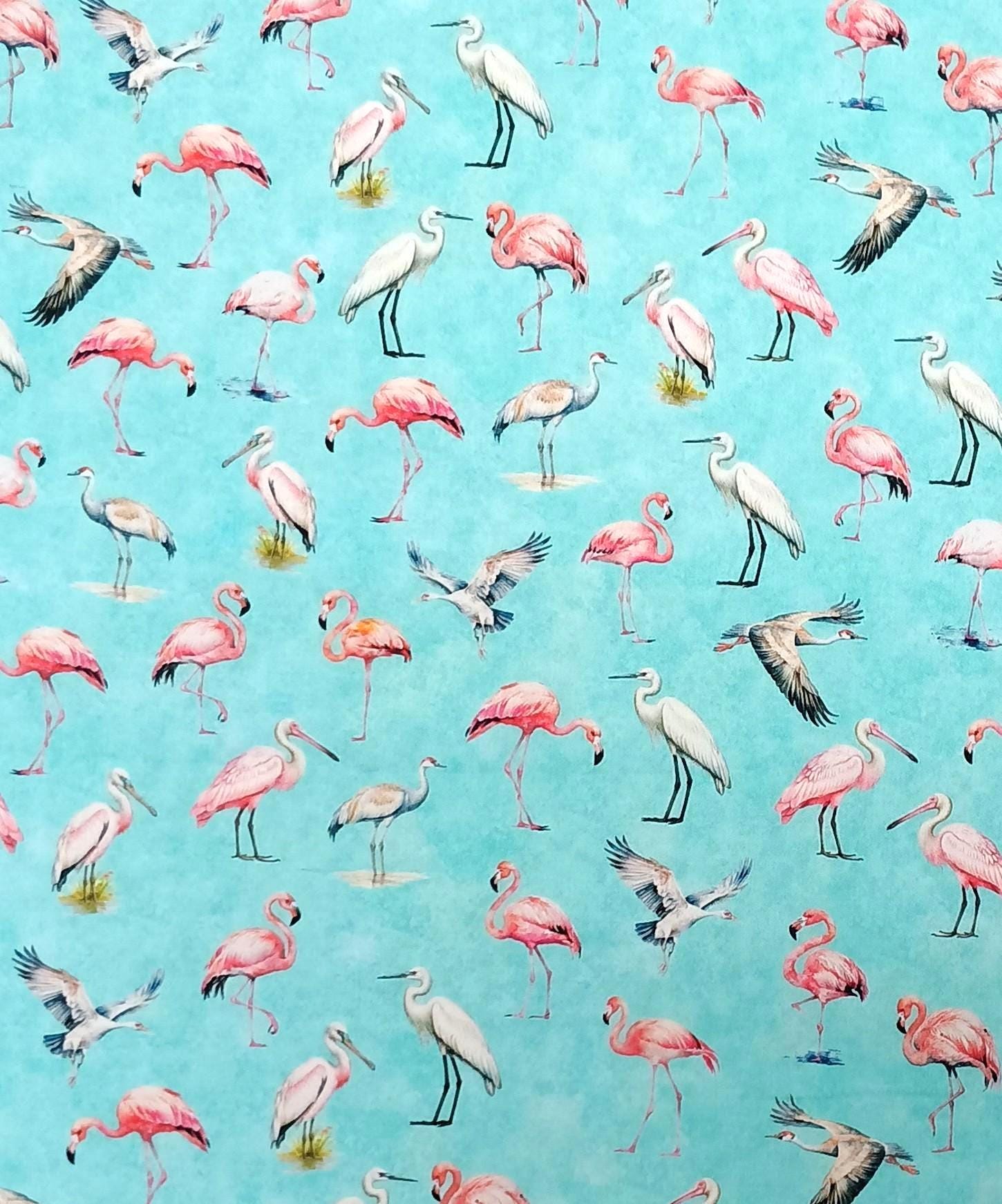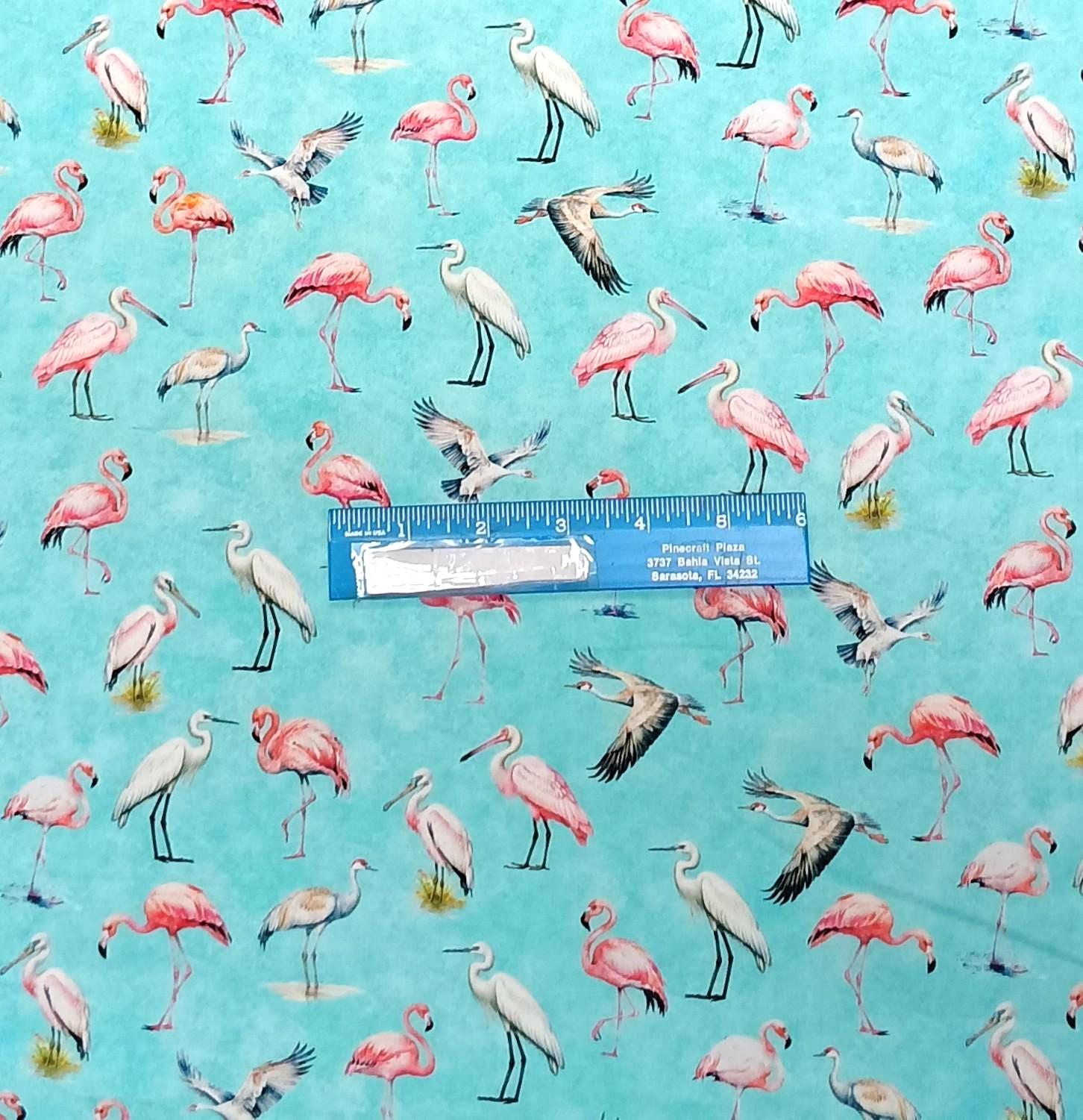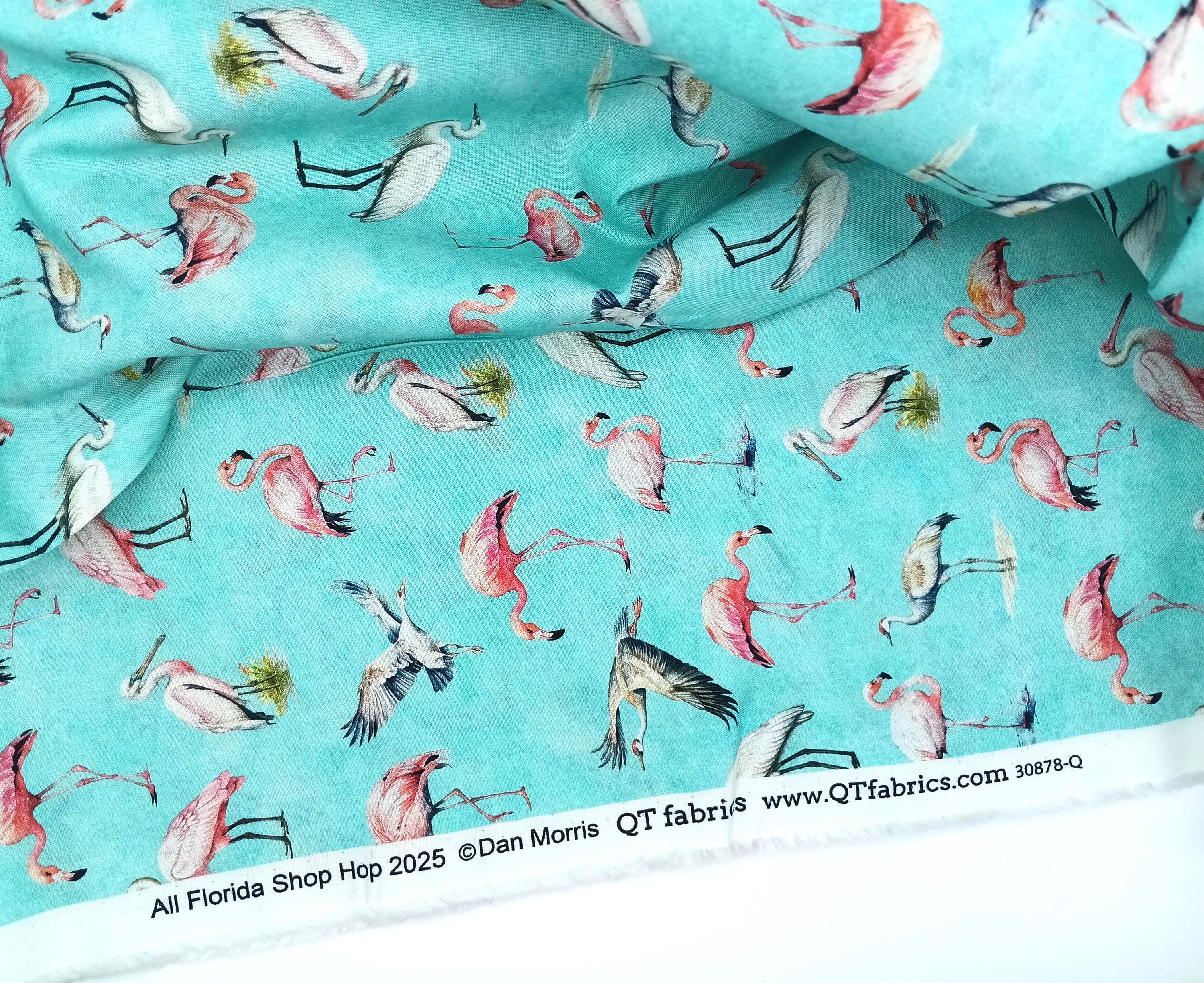Florida shop hop 2025 cotton fabric Florida Birds on Aqua background Sold by the yard Wash warm tumble dryNo bleach no dry cleaning