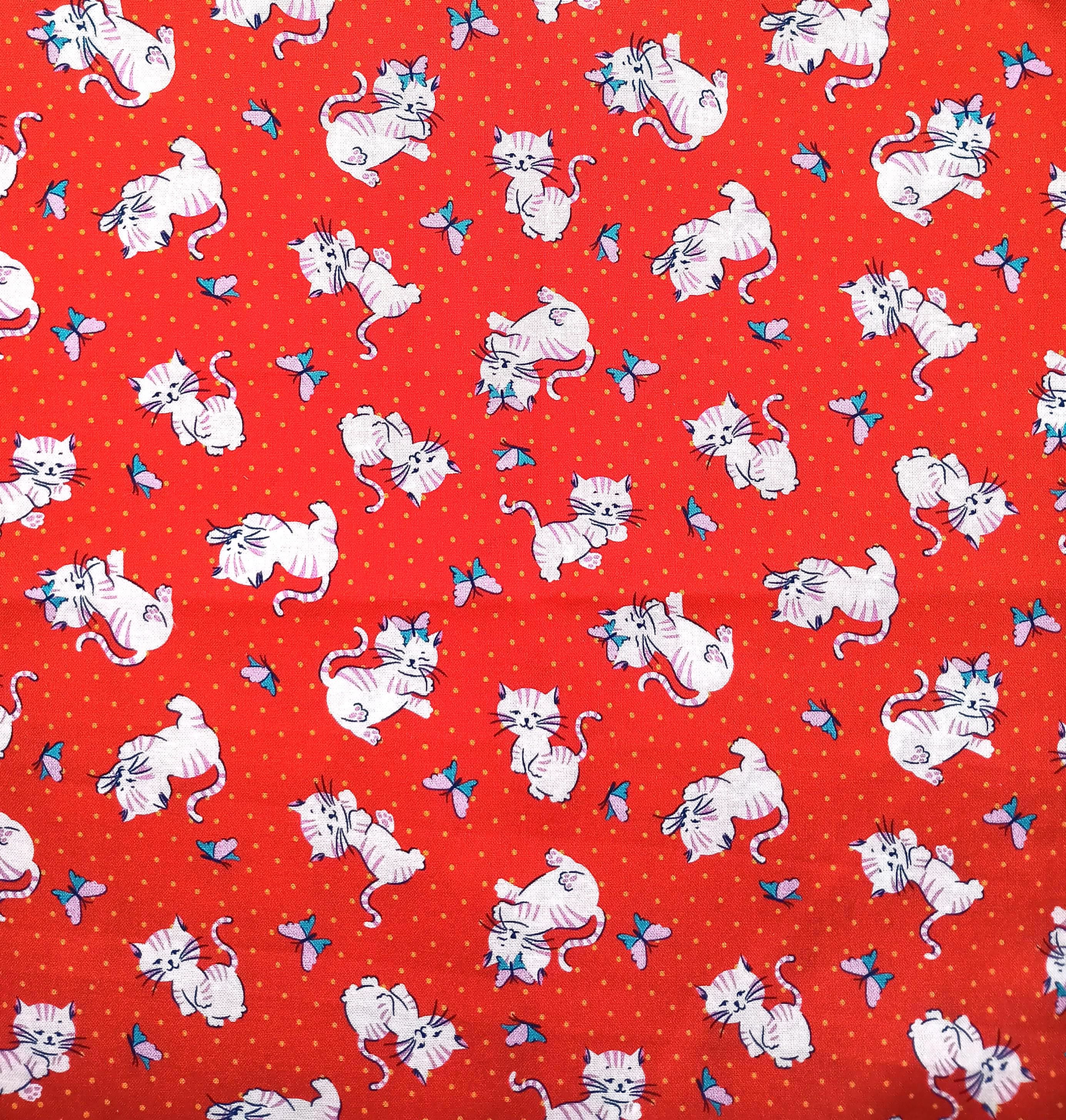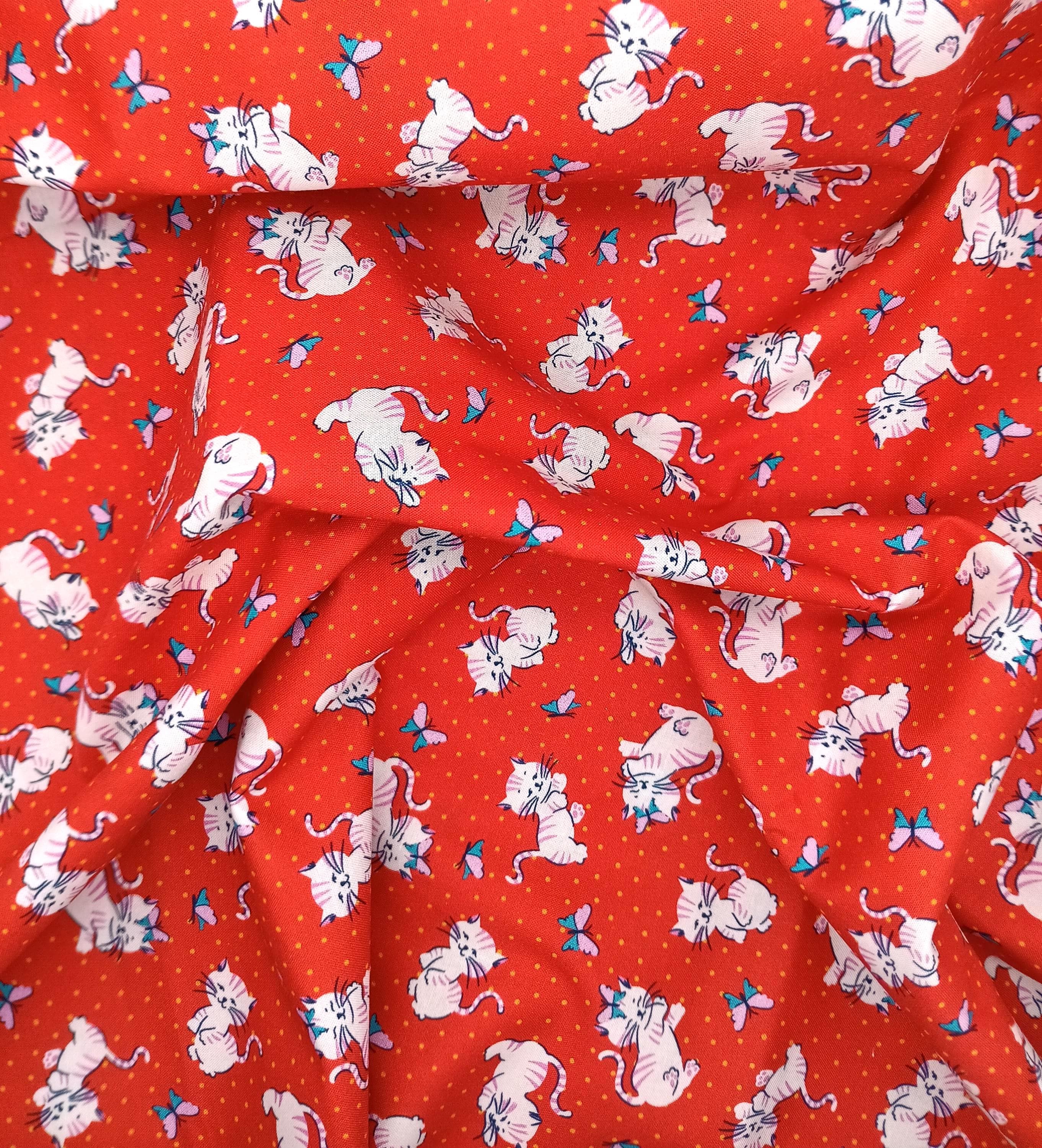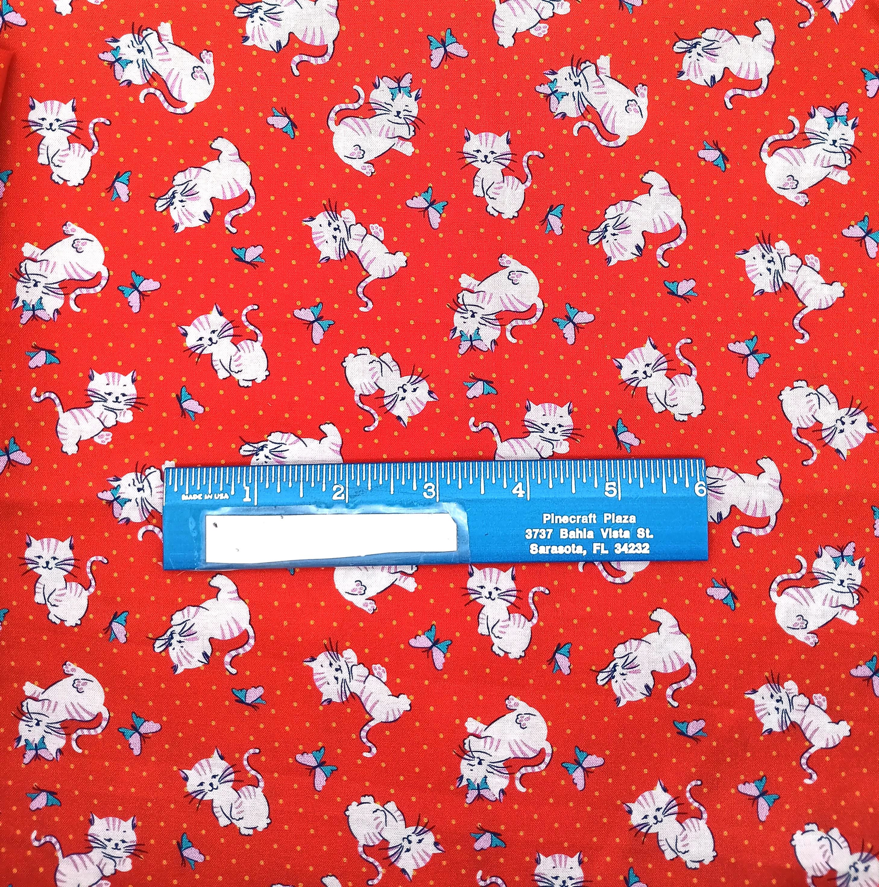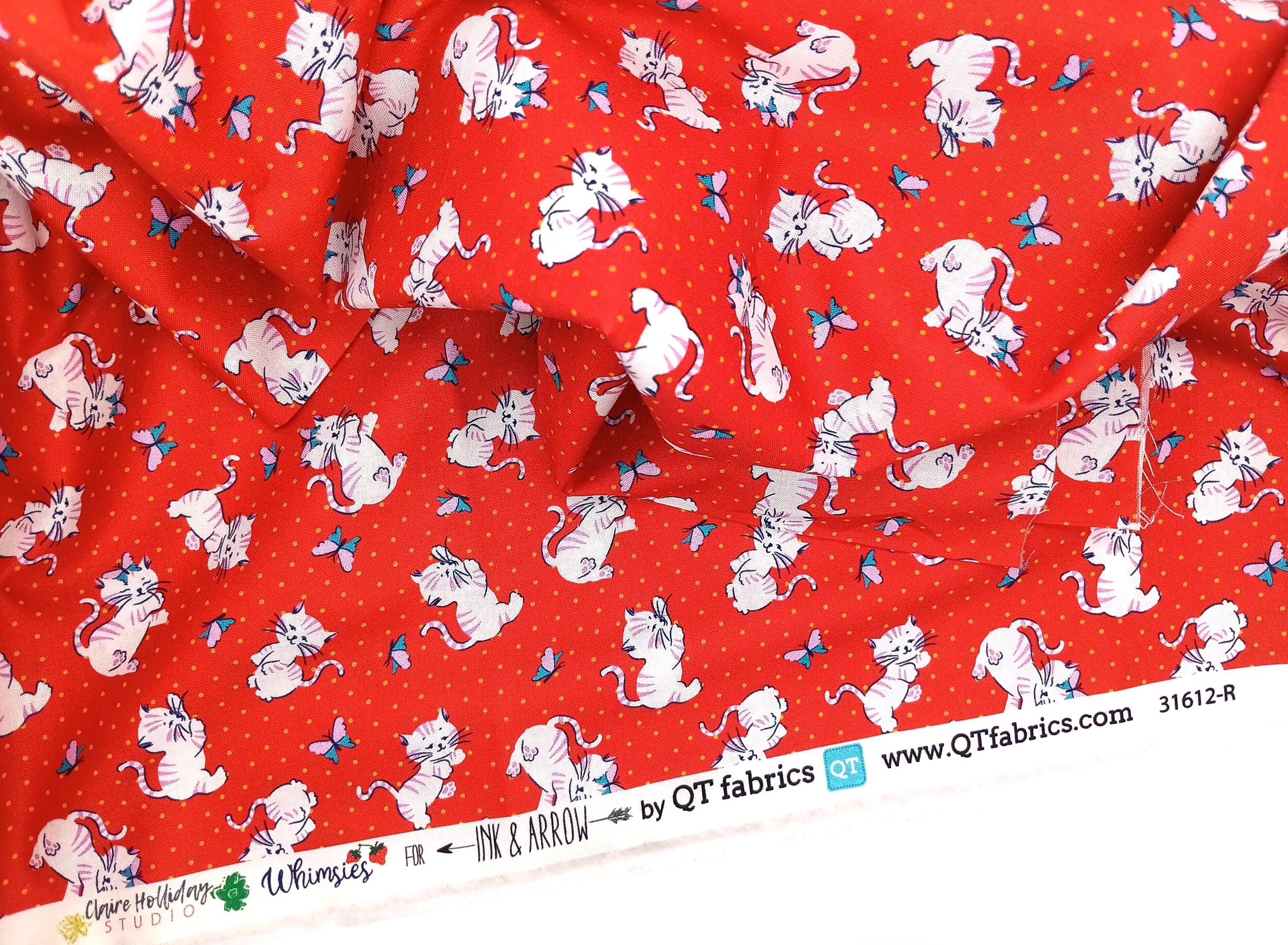 20s 30s feedsack depression print fabric Whimsies by Claire Hollidayfor Ink & Arrow by QT Fabrics 100% cotton Cats on red backgroundSold by the yardWash warmDo not dry clean