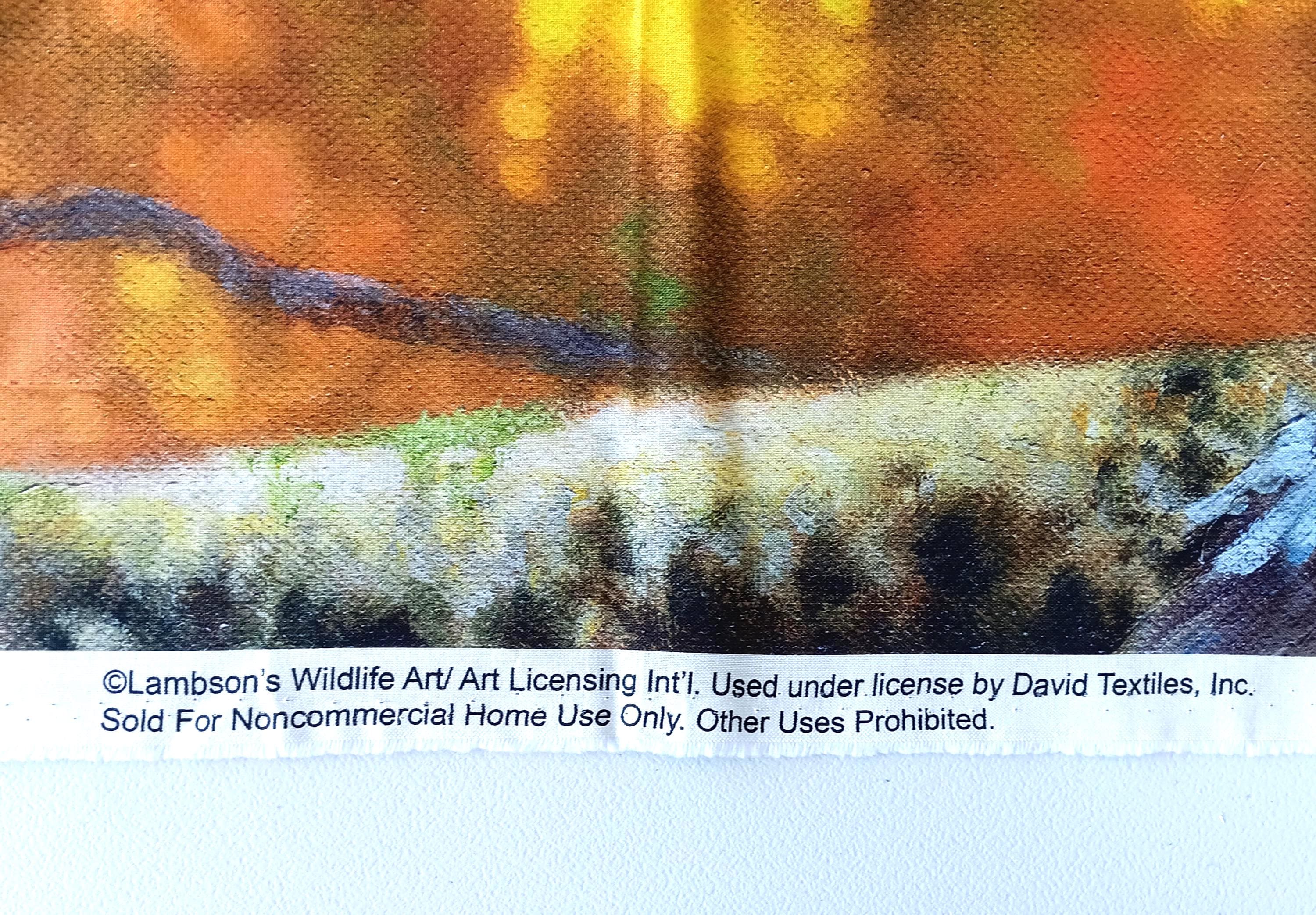 Deer in autumn portrait by Lambson's Wildlife Art100% cotton fabric panel 35x43Perfect to frame or use as centerpiece in a quilt Machine wash mild soapTumble dry mediumNo bleach no dry cleaning
