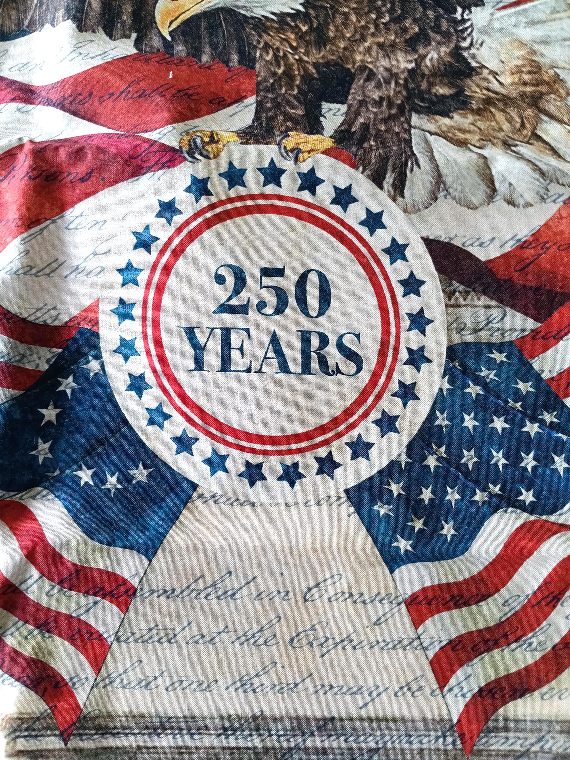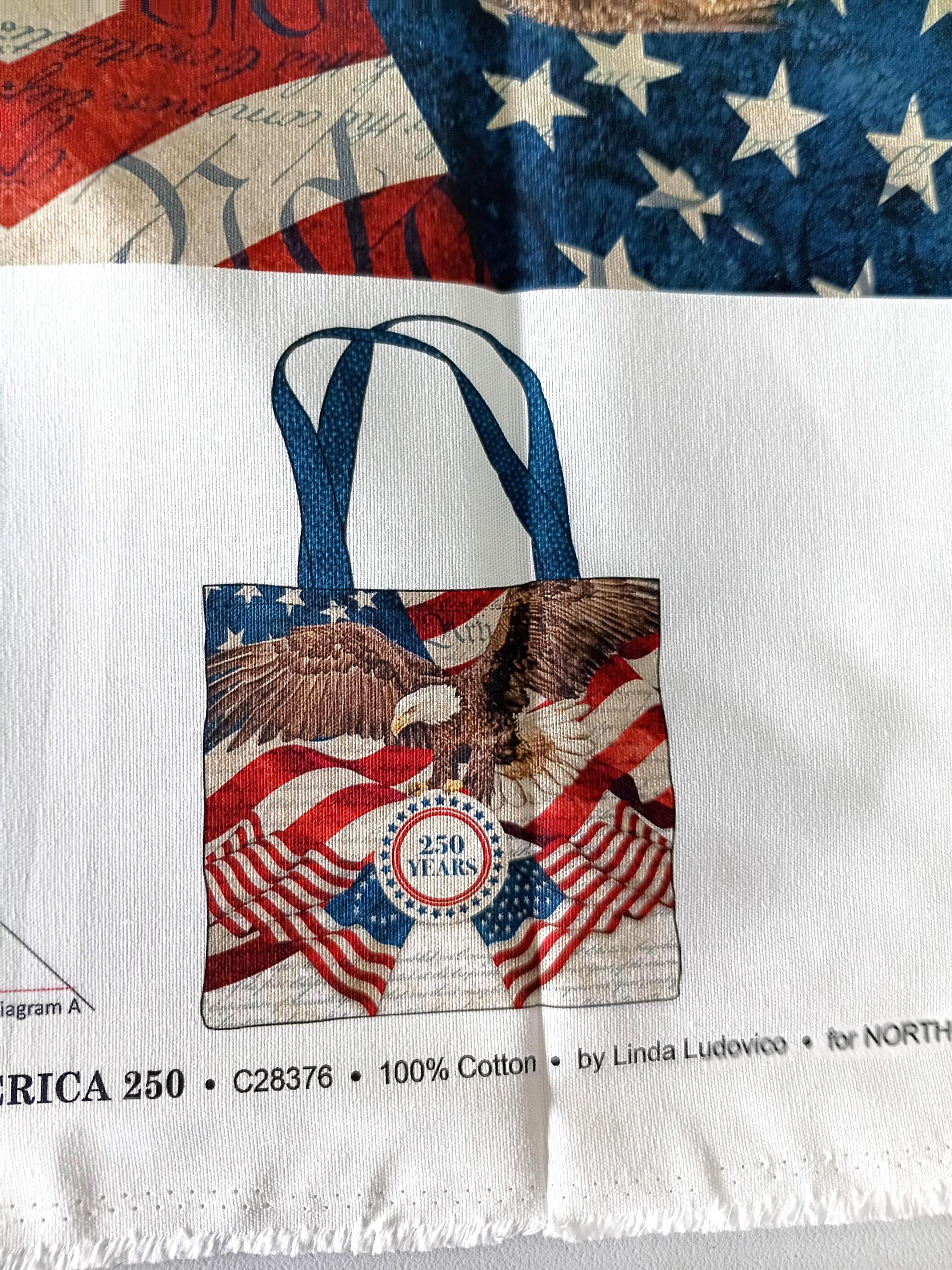 America 250 canvas fabric panel for making a tote bag Bald Eagleby Linda Ludovico for Northcott29" by 46" 100% Cotton canvasInstructions on the panel