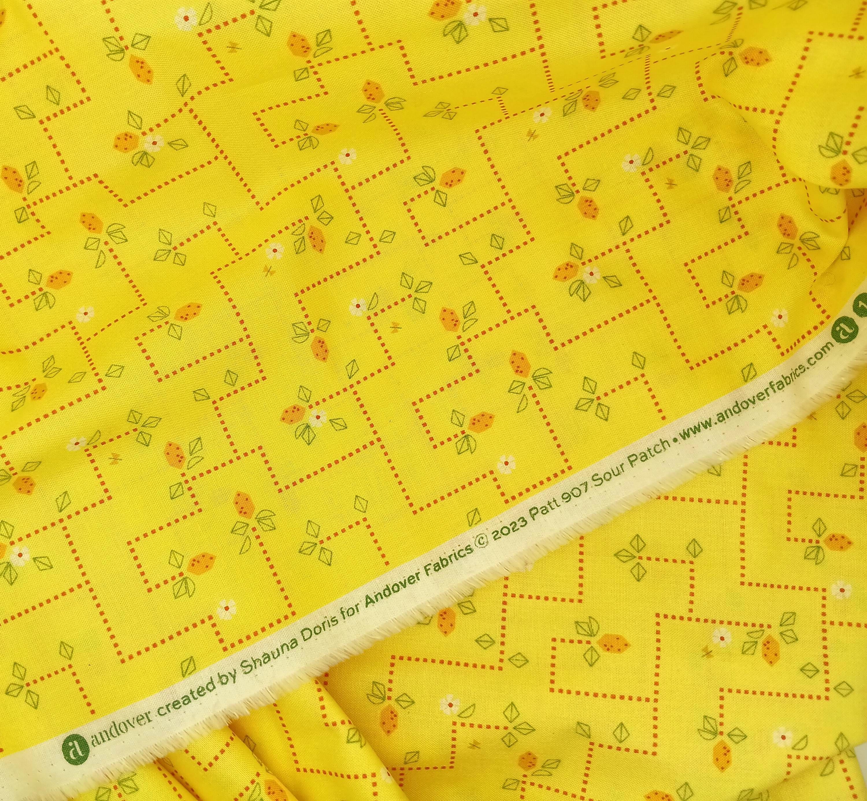 Depression 20s 30s Feedsack Reproduction 100% cotton fabricAndover Fabrics Patter 907 yellowSour Patch by Shauna DorisWash warm, Tumble dryDo not dry cleanNo Bleach