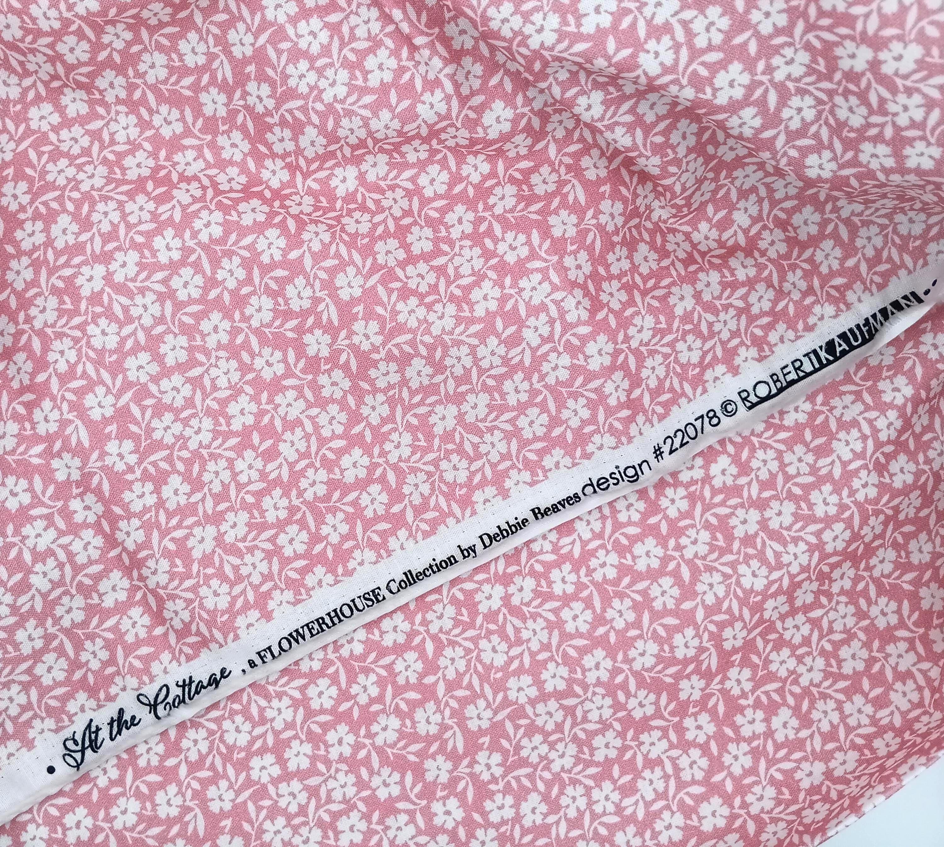 Depression 20s30s feedsack reproduction fabric. Robert Kaufmann At the Cottage by Debbie Beaves Pink Background with white white flowersSold by the yard Warm warm tumble dry medium No dry clean