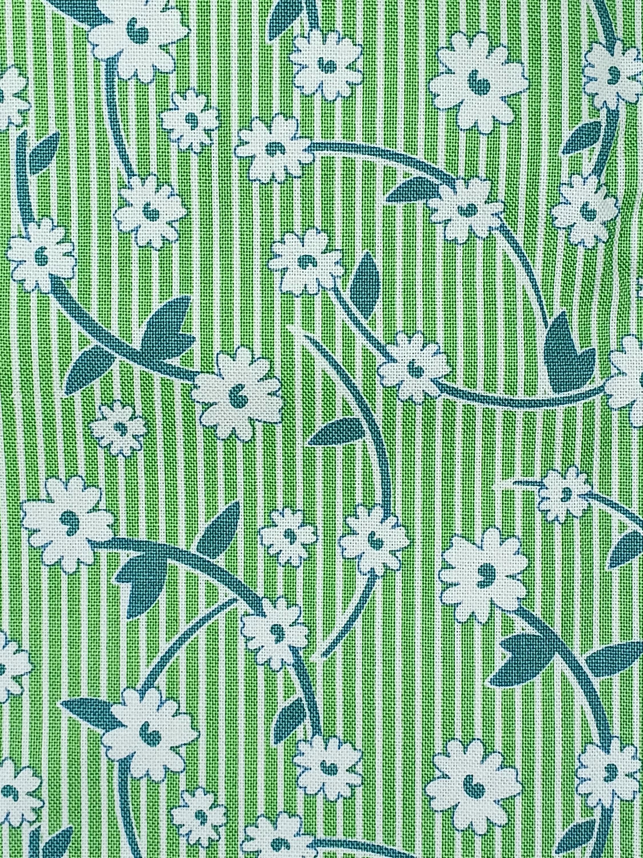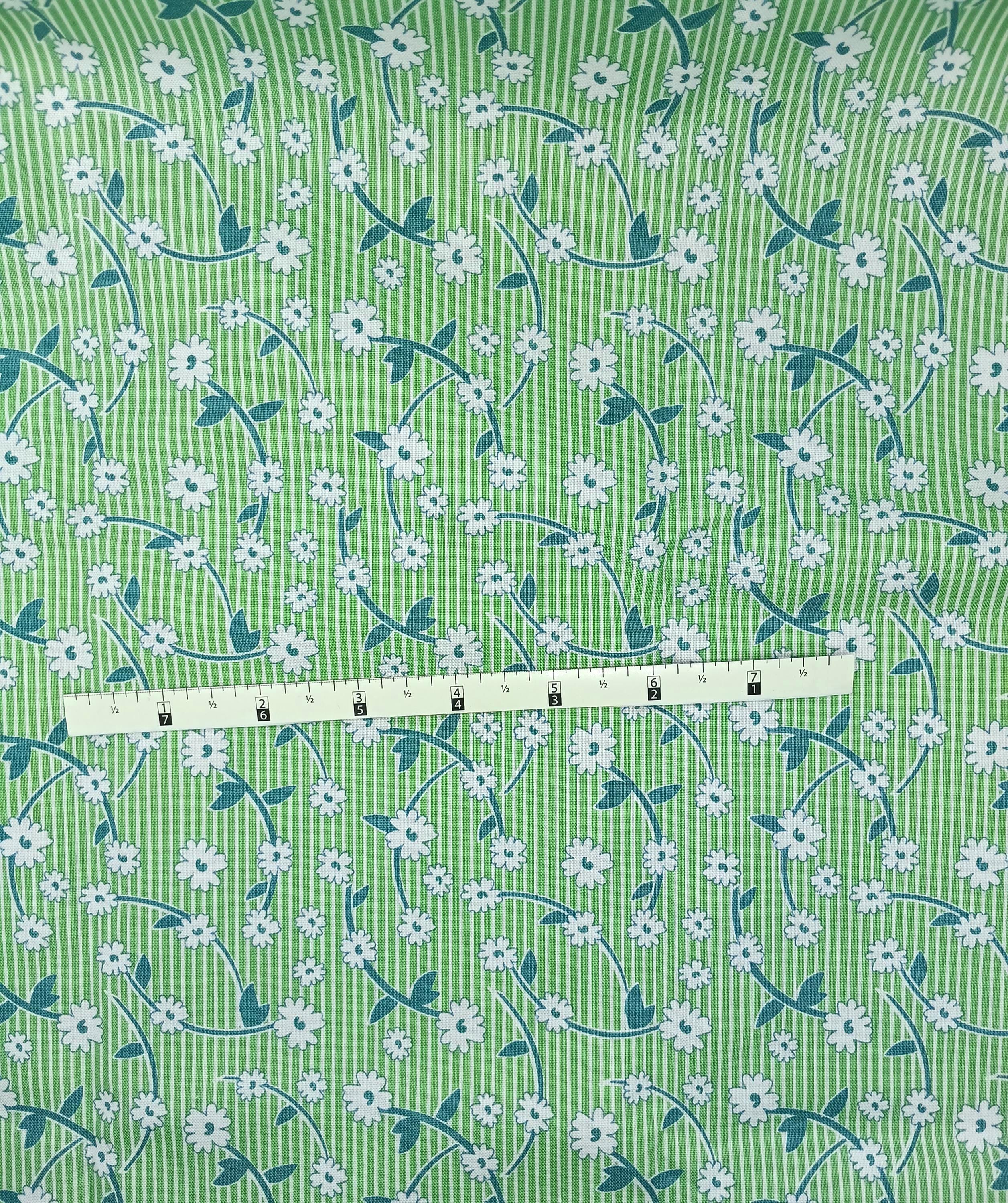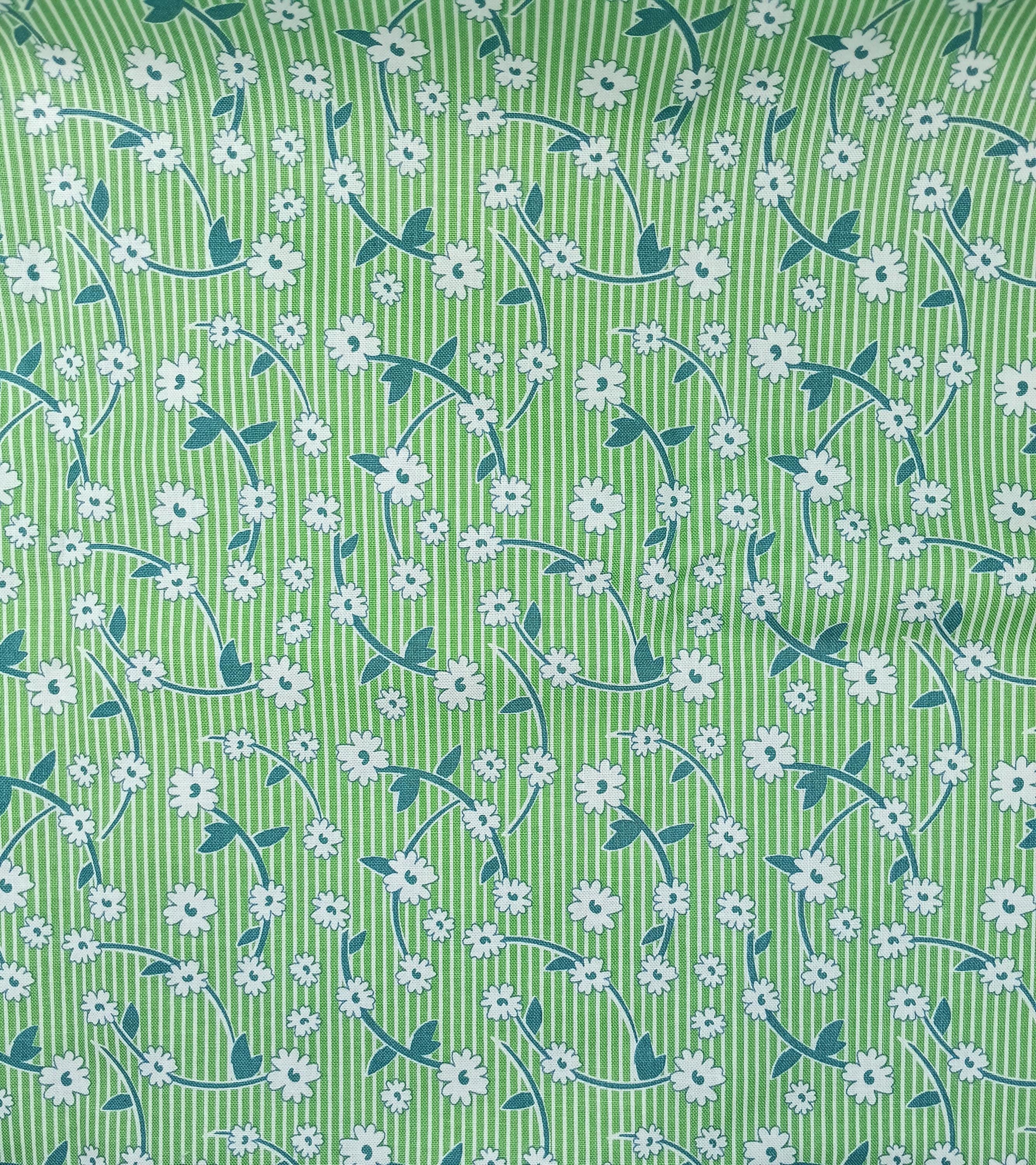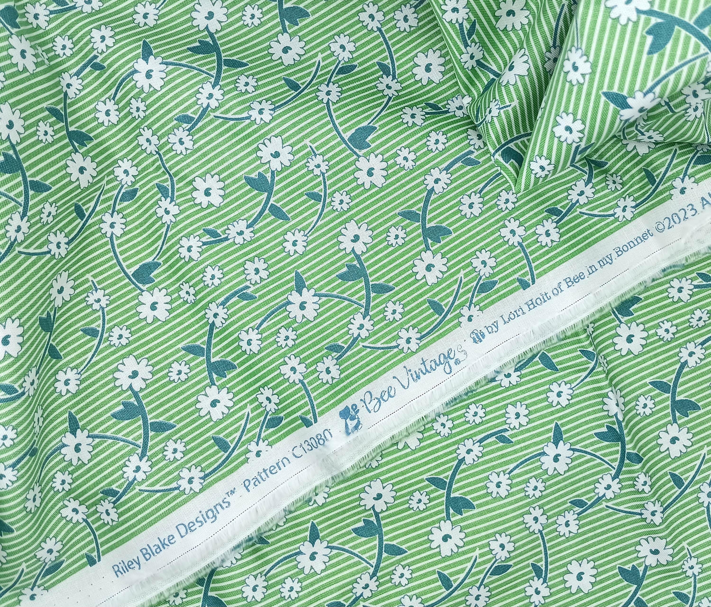 Depression 20s 30s Feedsack print RBD Designs C13080 Bee Vintage by Lori HoltWhite flowers on green 100% cottonReproductionWash WarmNo dry cleaning