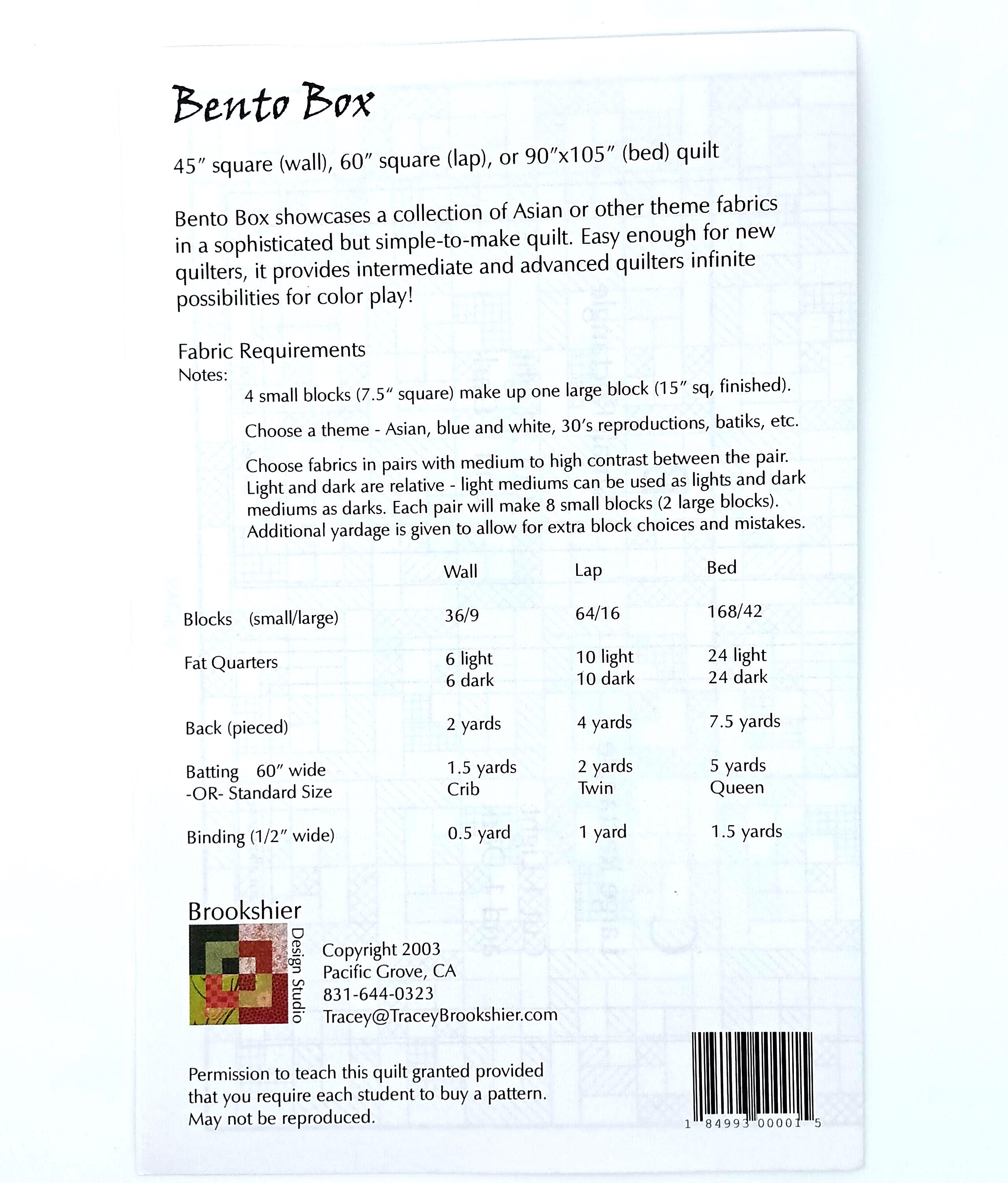 Bento Box quilt pattern by Tracey BrookshierFat Quarter and Scrap friendly