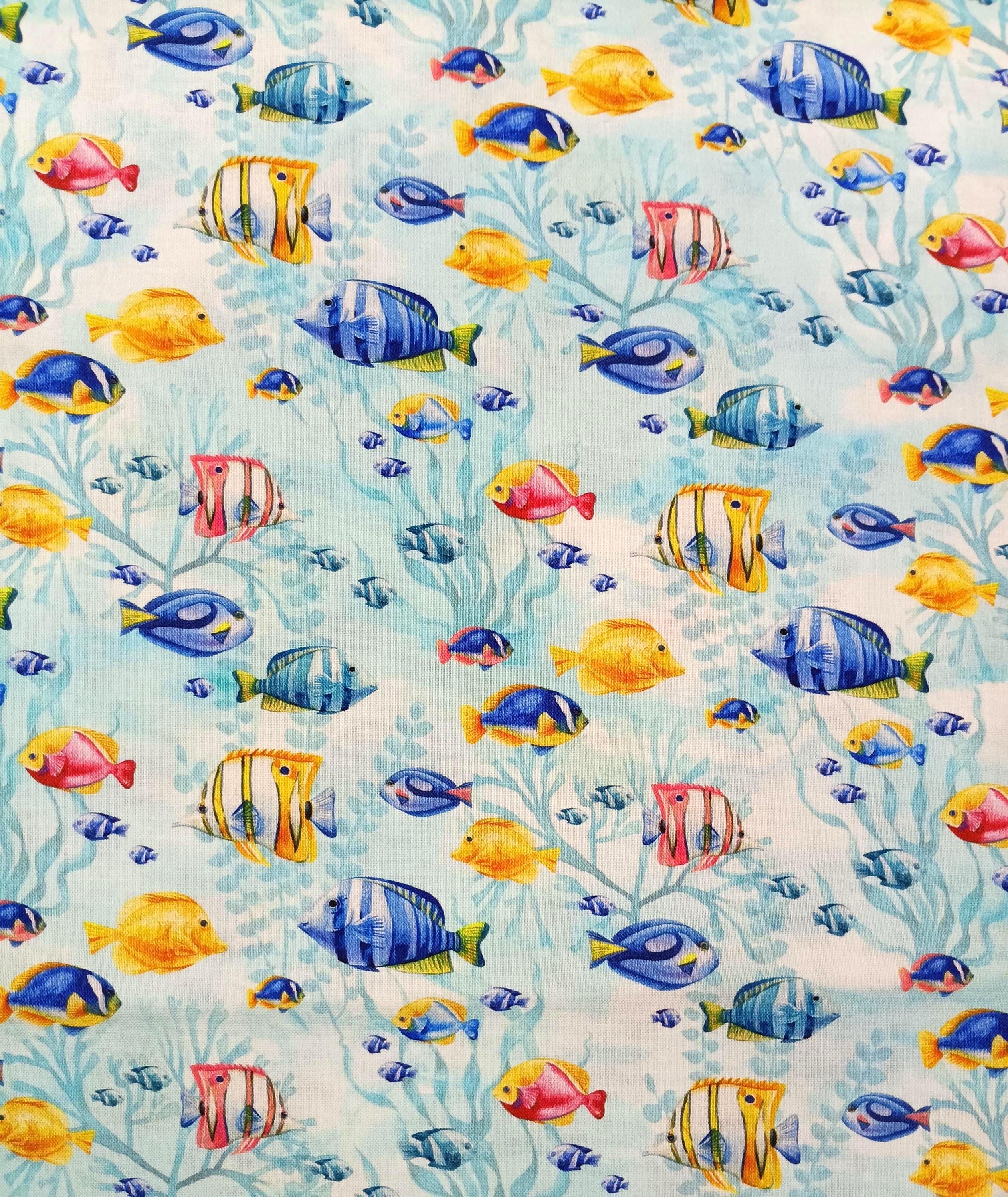 Coastal Breeze fabric by NorthcottFish on aqua background 100% cottonSold by the yardMachine Wash WarmTumble Dry
