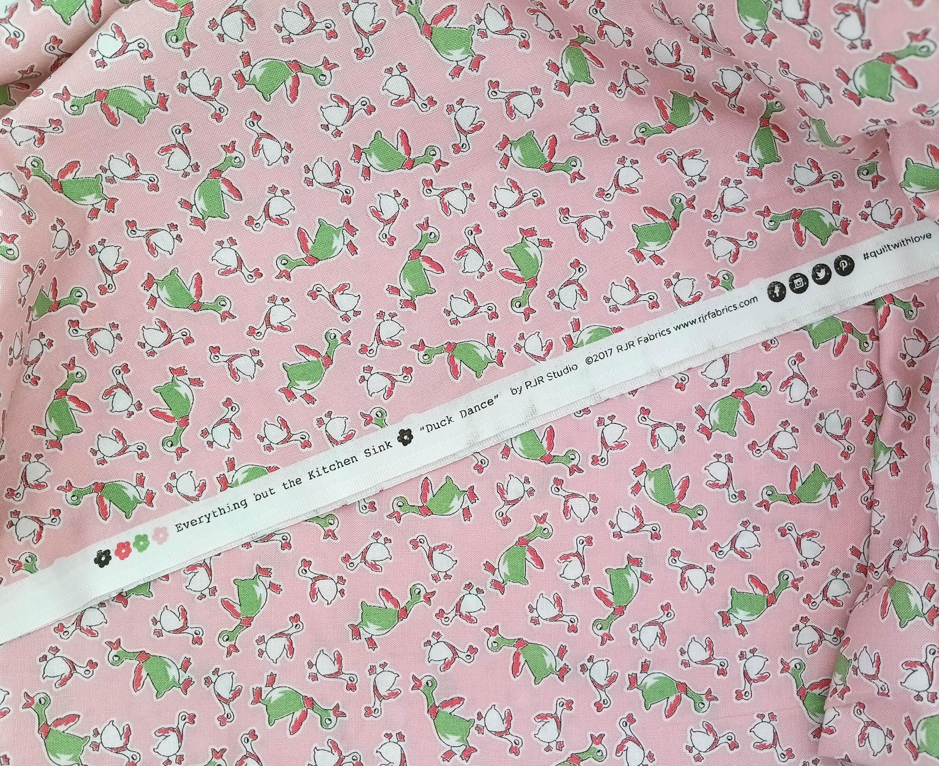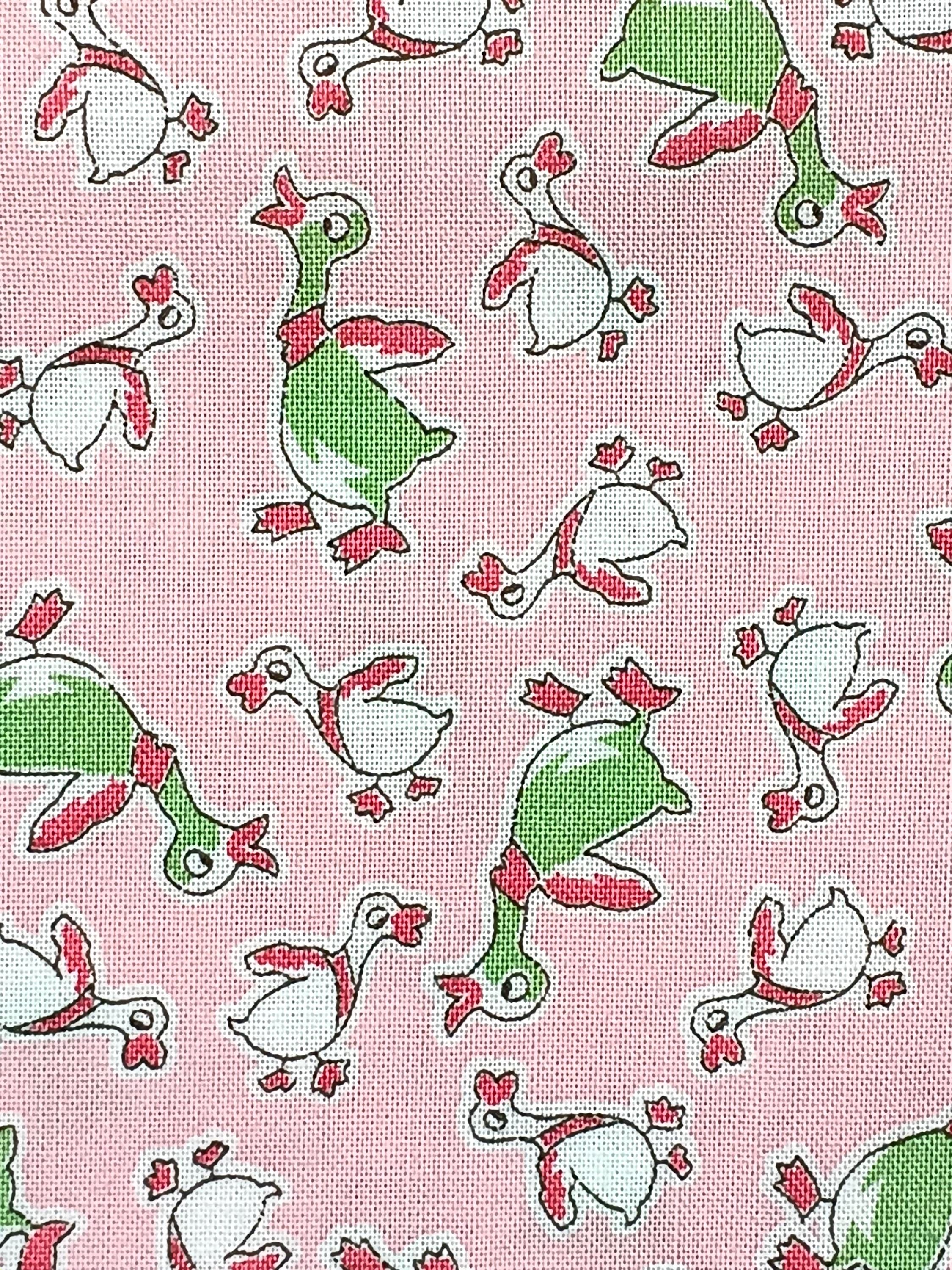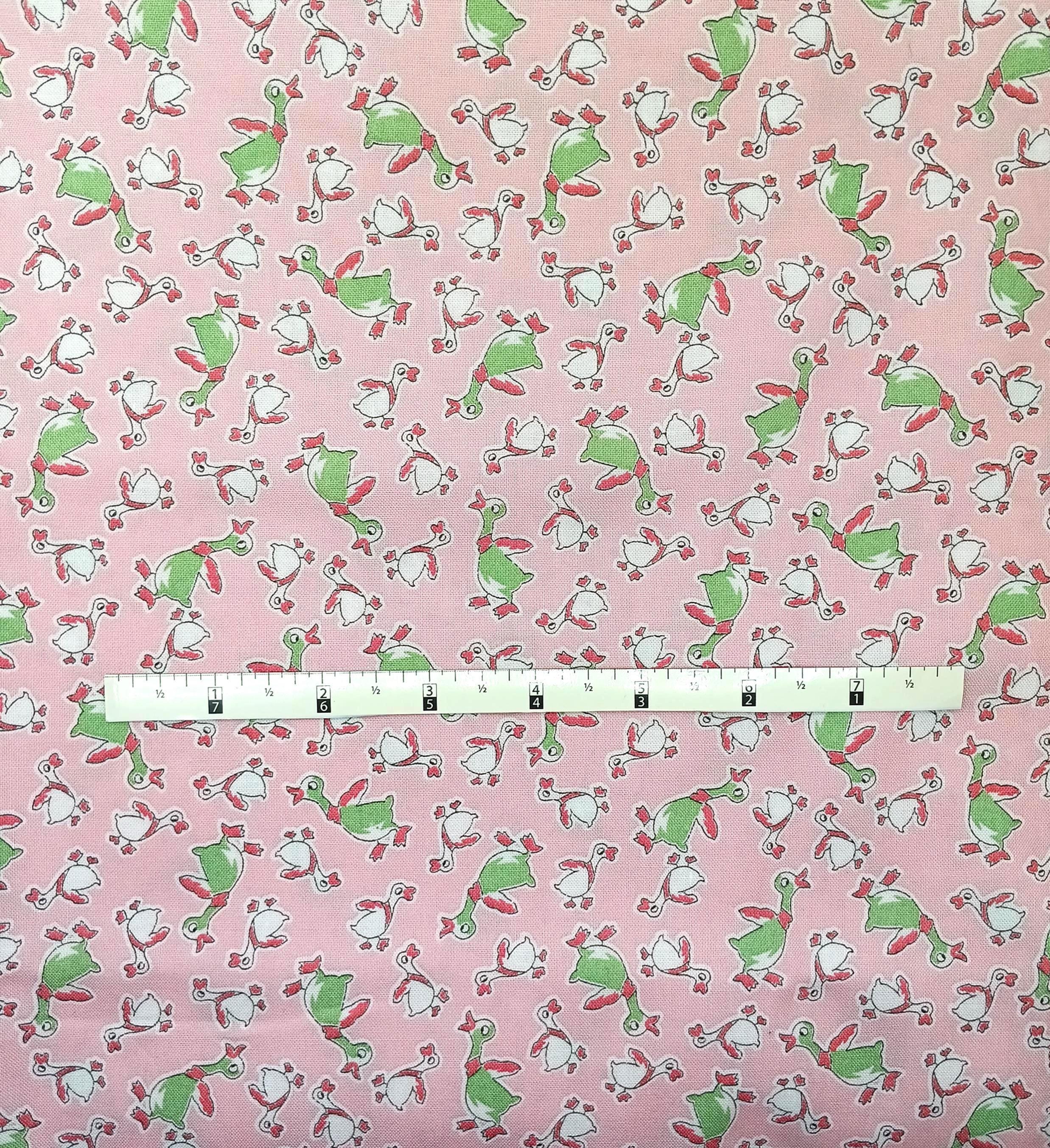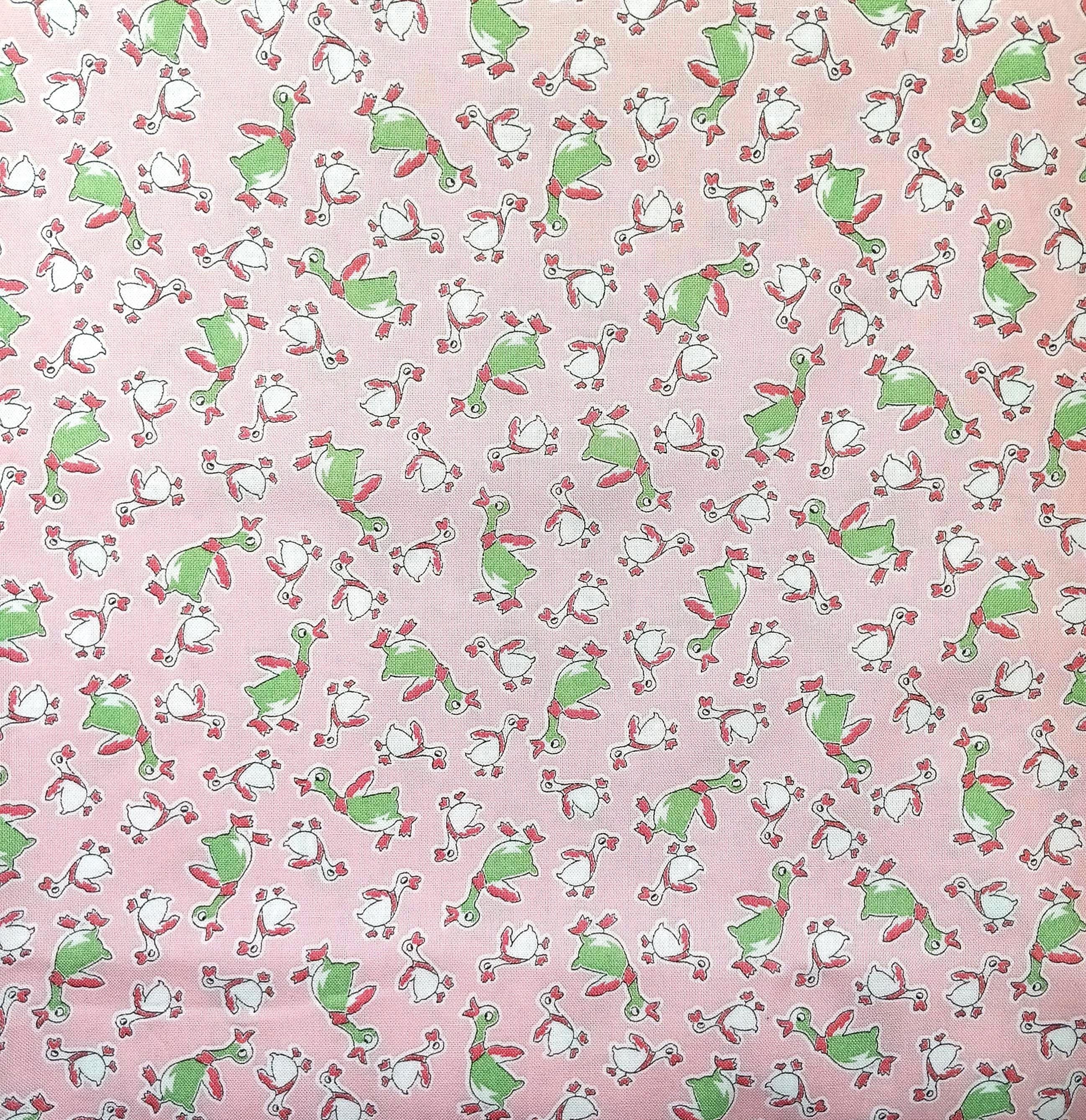 Depression 20s 30s Feedsack fabric Reproduction print.100% CottonRJR Studio Everything but the Kitchen SinkDuck DanceGreen and white ducks on pink backgroundBy the YardWash Warm tumble dry mediumNo Bleach no dry cleaning