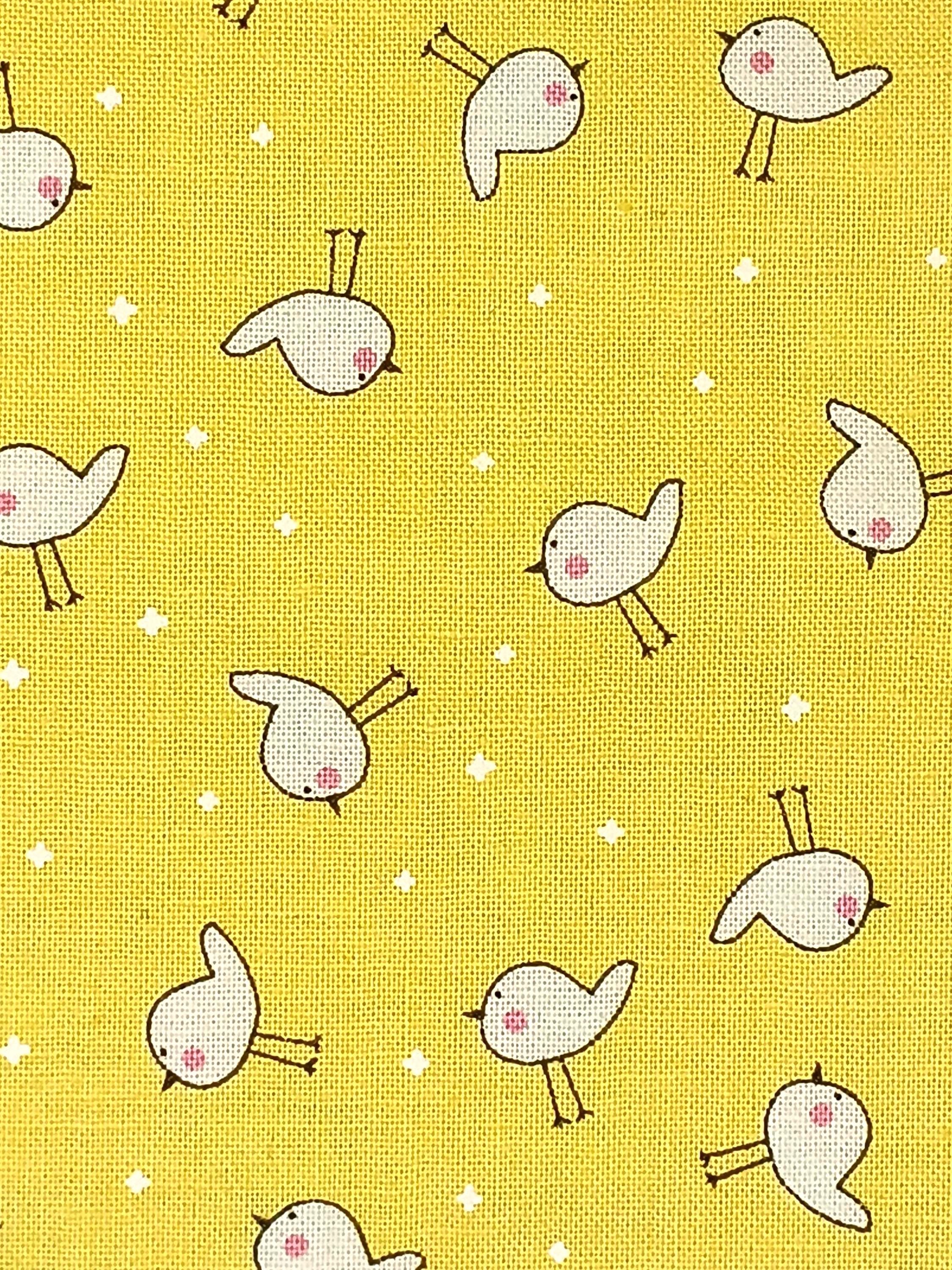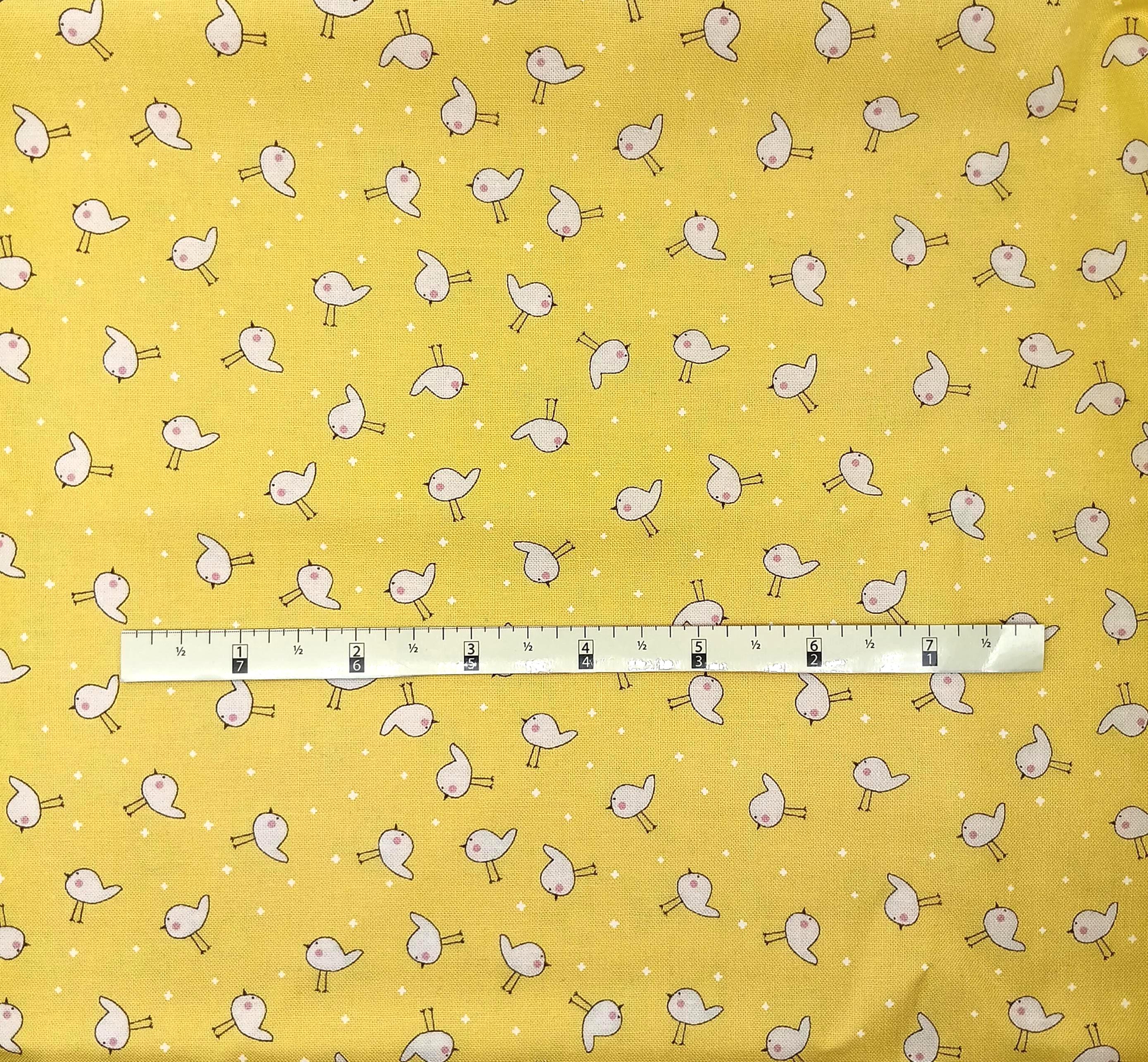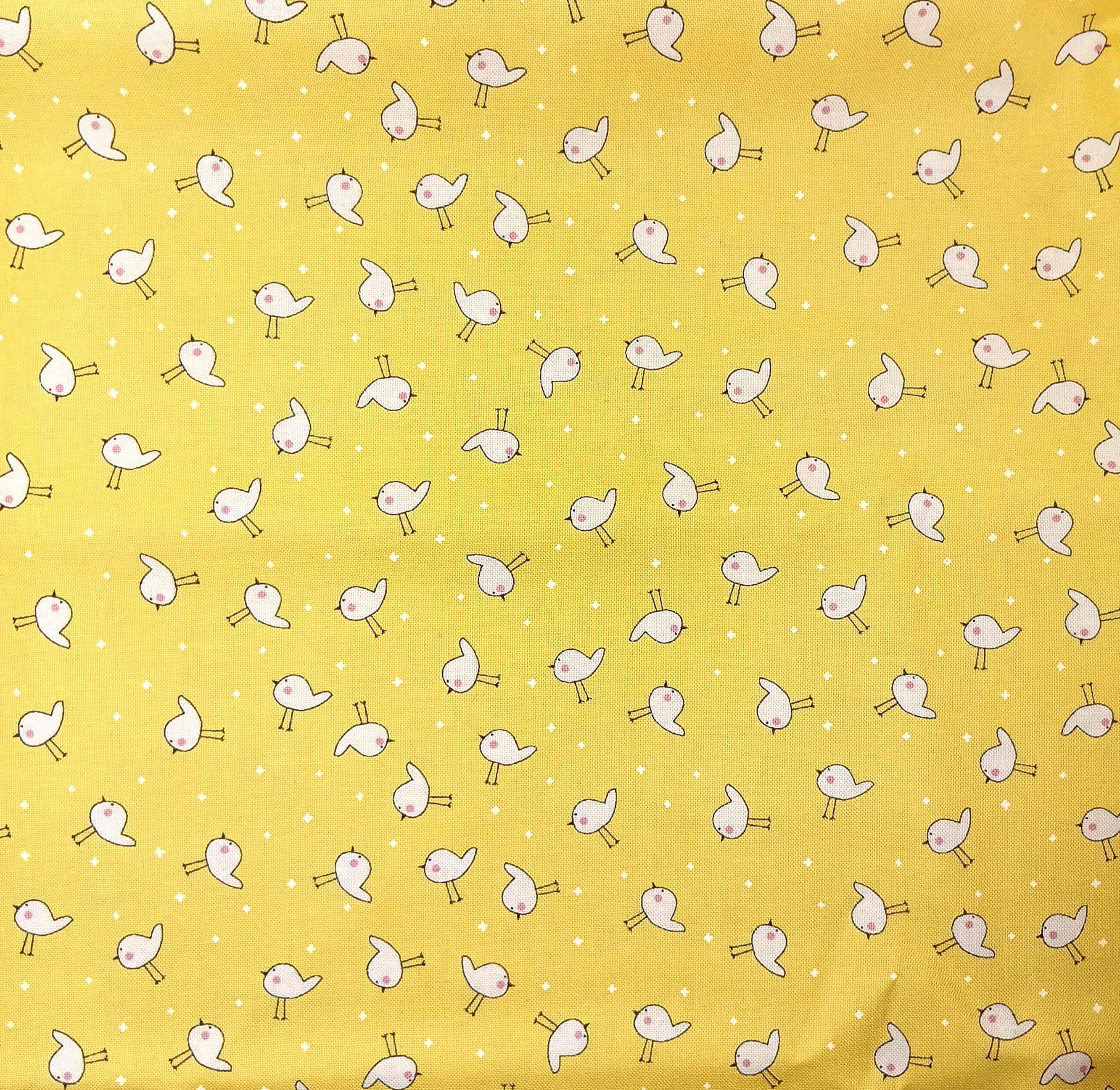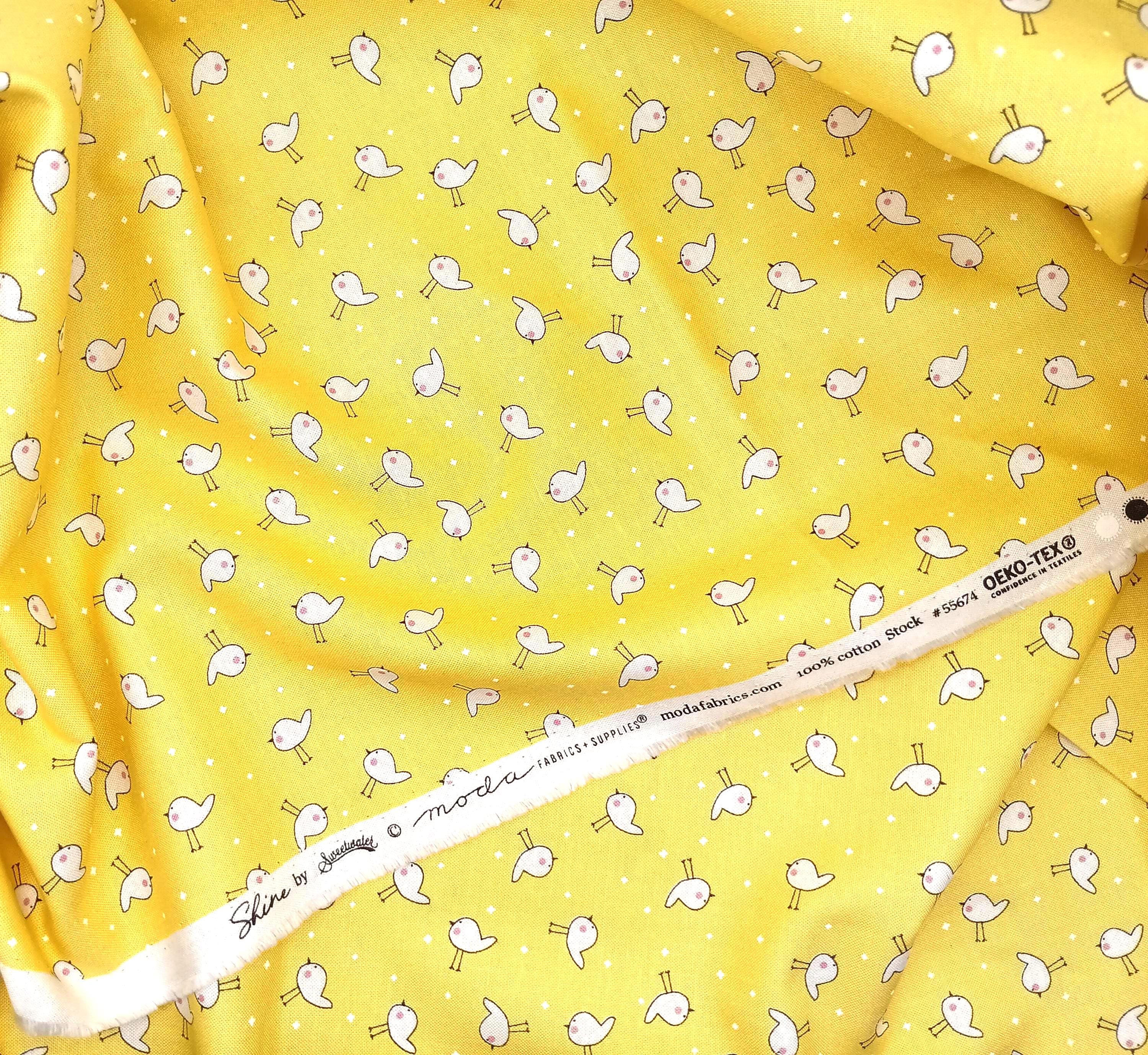 One yard Feedsack depression 20s/30s print 100% cottonSold by the yardModa fabrics & supplies“Shine” by SweetwaterWhite birds on yellow background Wash warmTumble dryNo bleachNo dry clean