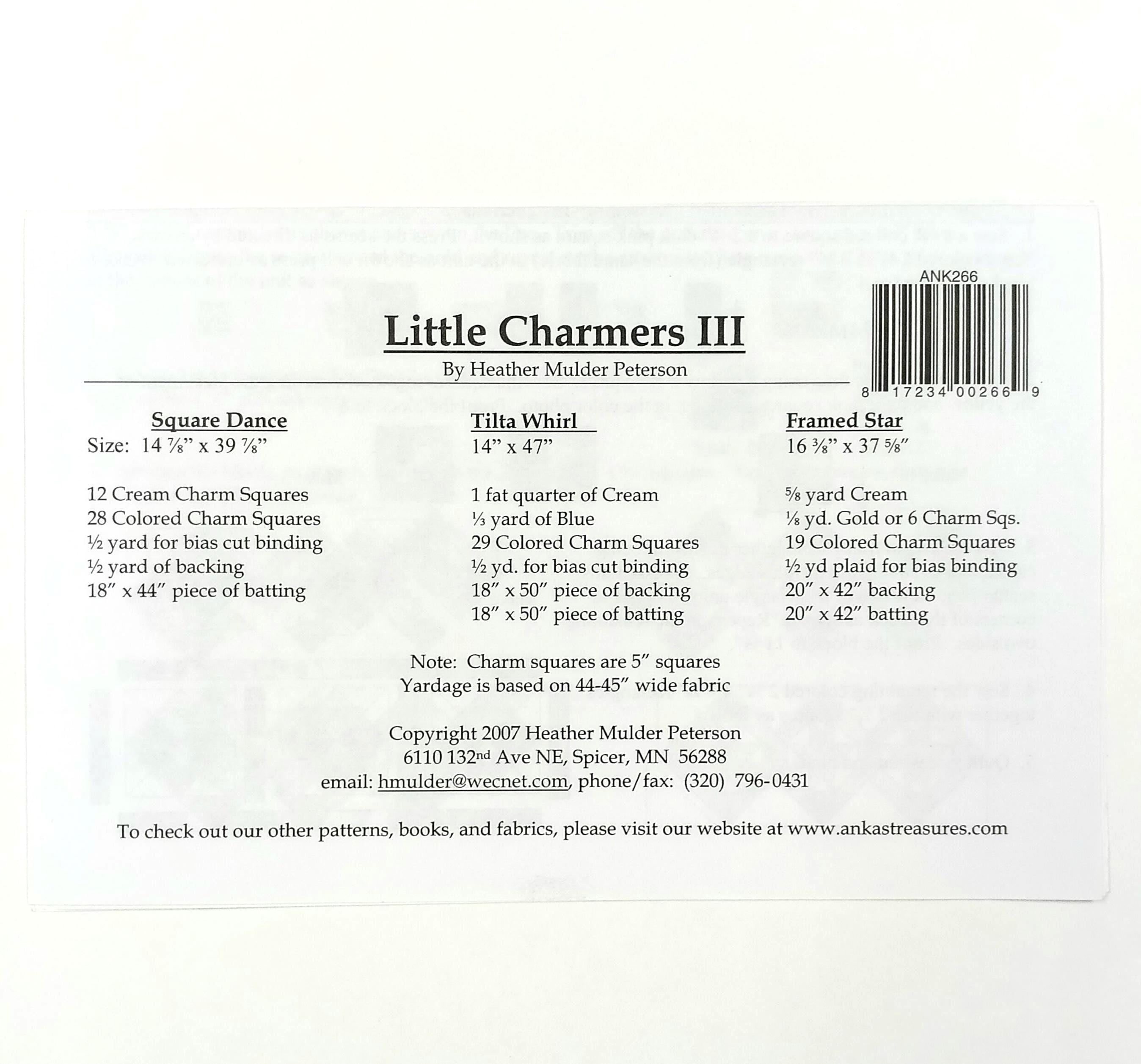 Little Charmers III Table Runner Patternby Heather Mulder Peterson for Anka's TreasuresInstructions to make 3 different table runners with 5" squares