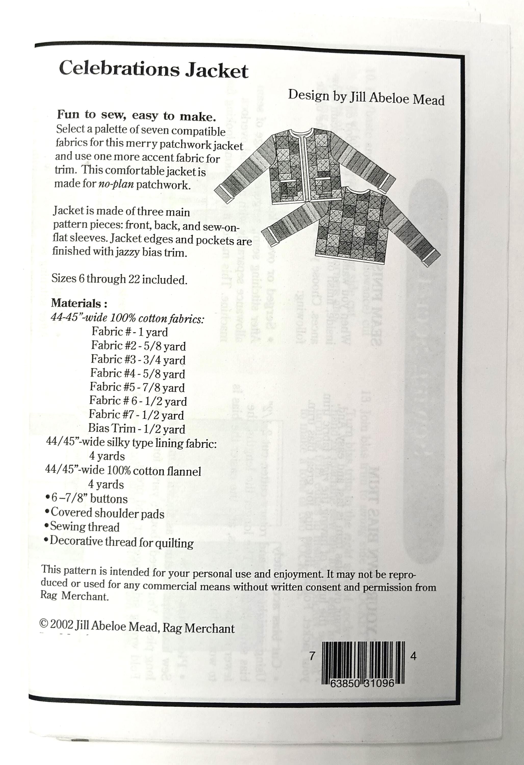 Celebrations Jacket pattern, design by Jill Abeloe MeadPatchwork quilted jacket