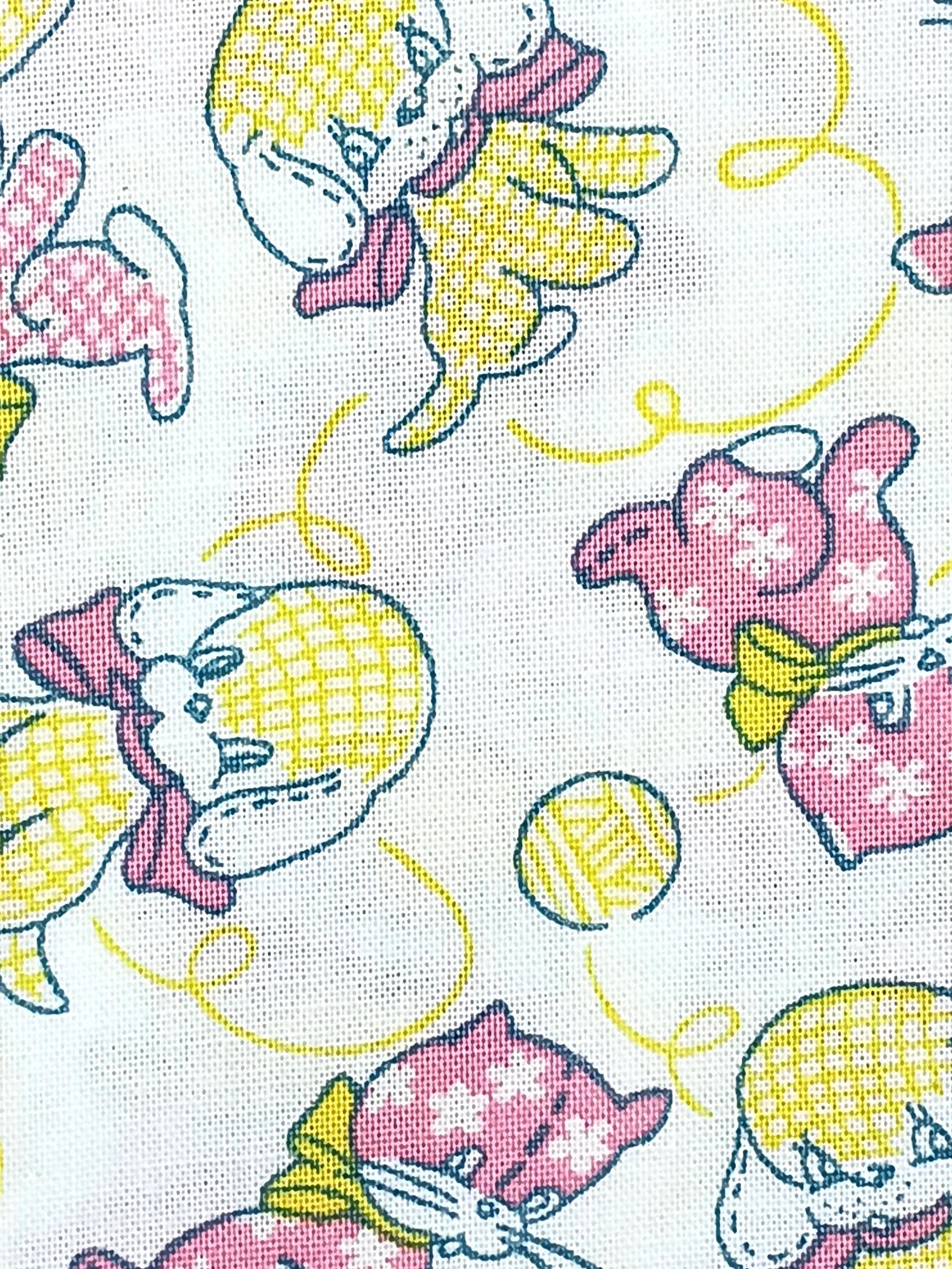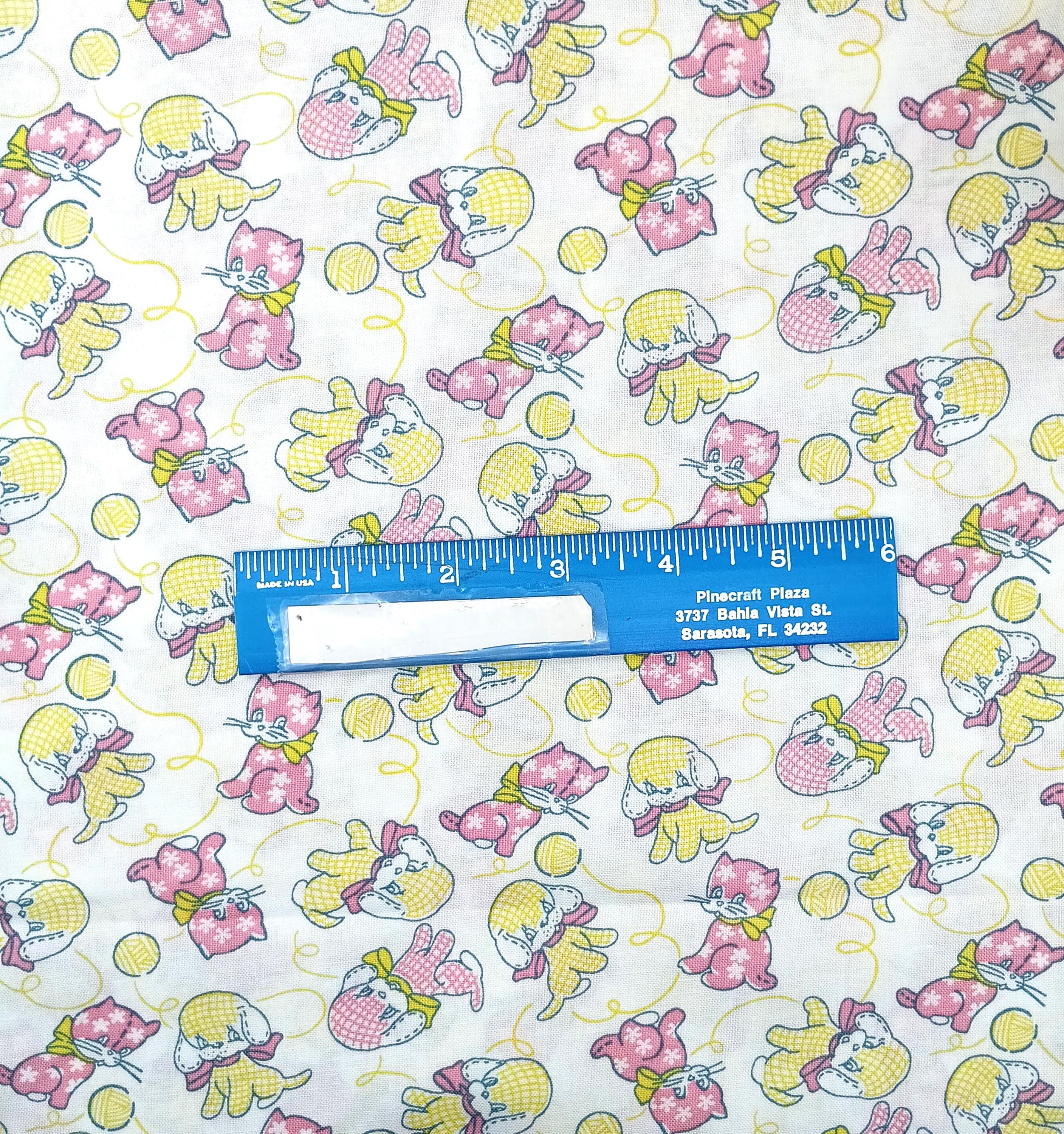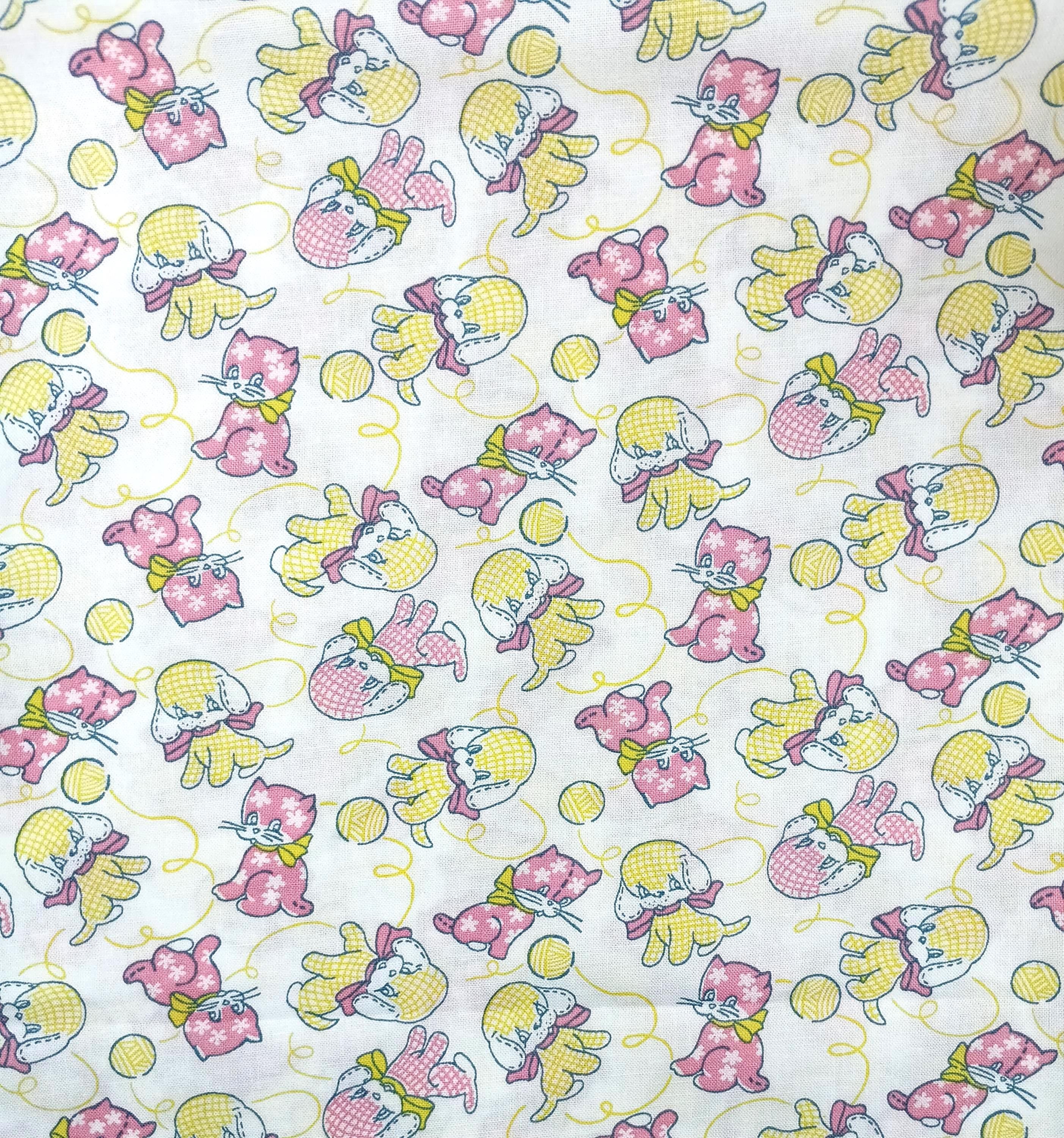 One yard Feedsack depression 20s/30s print 100% cottonSold by the yardRJR E.B.T.K.S XV “Furry Critters”Pink and yellow puppy & kitten with yarnWash warmTumble dryNo bleachNo dry clean